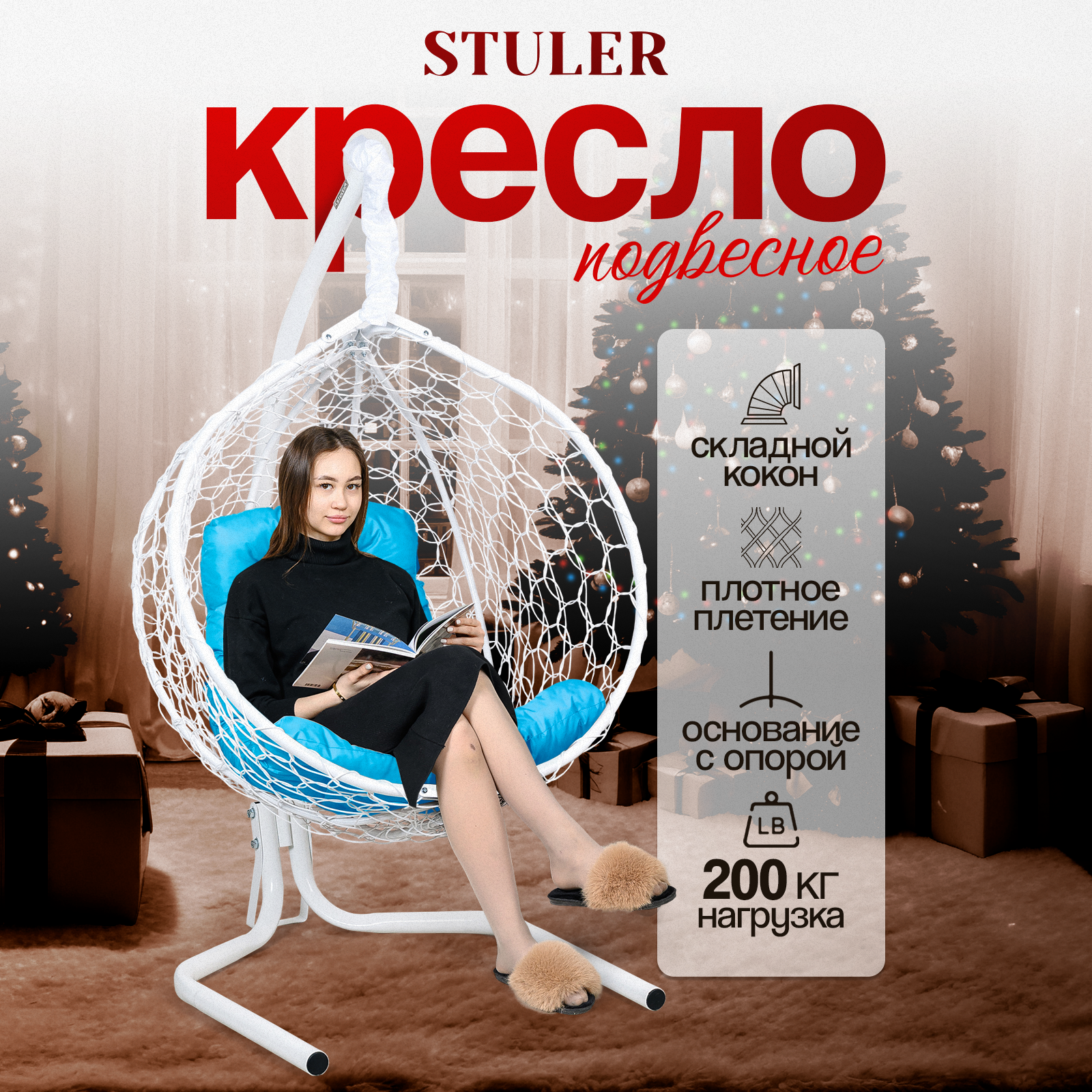 Подвесное кресло-кокон STULER Smile Белый с голубой подушкой-трапецией, 175 х 63 х 105 см для дачи и сада: сравнение цен, характеристики, фото, актуальное наличие и цены.