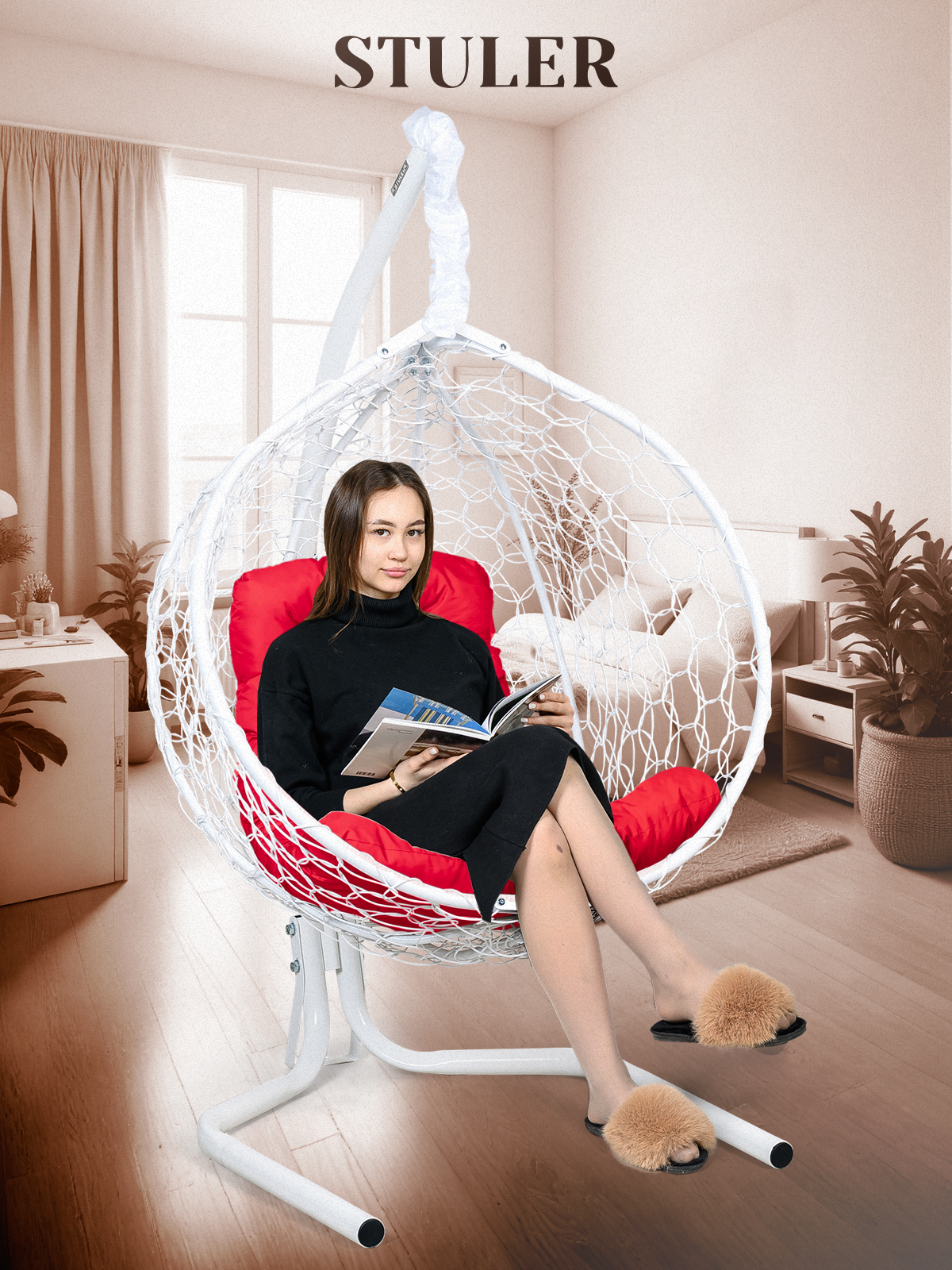 Подвесное кресло-кокон STULER Smile Белый с красной подушкой-трапецией, 175 х 63 х 105 см для дачи и сада: сравнение цен, характеристики, фото, актуальное наличие и цены.