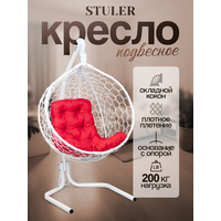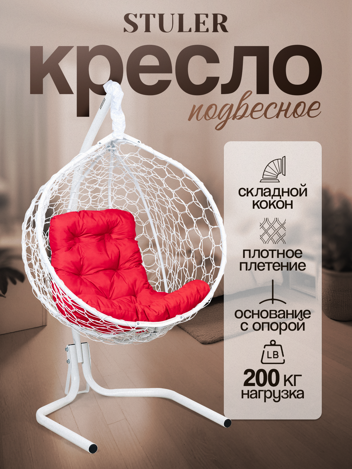 Купить Подвесное кресло-кокон STULER Smile Белый с красной подушкой-трапецией, 175 х 63 х 105 см для дачи и сада с доставкой по всей России.