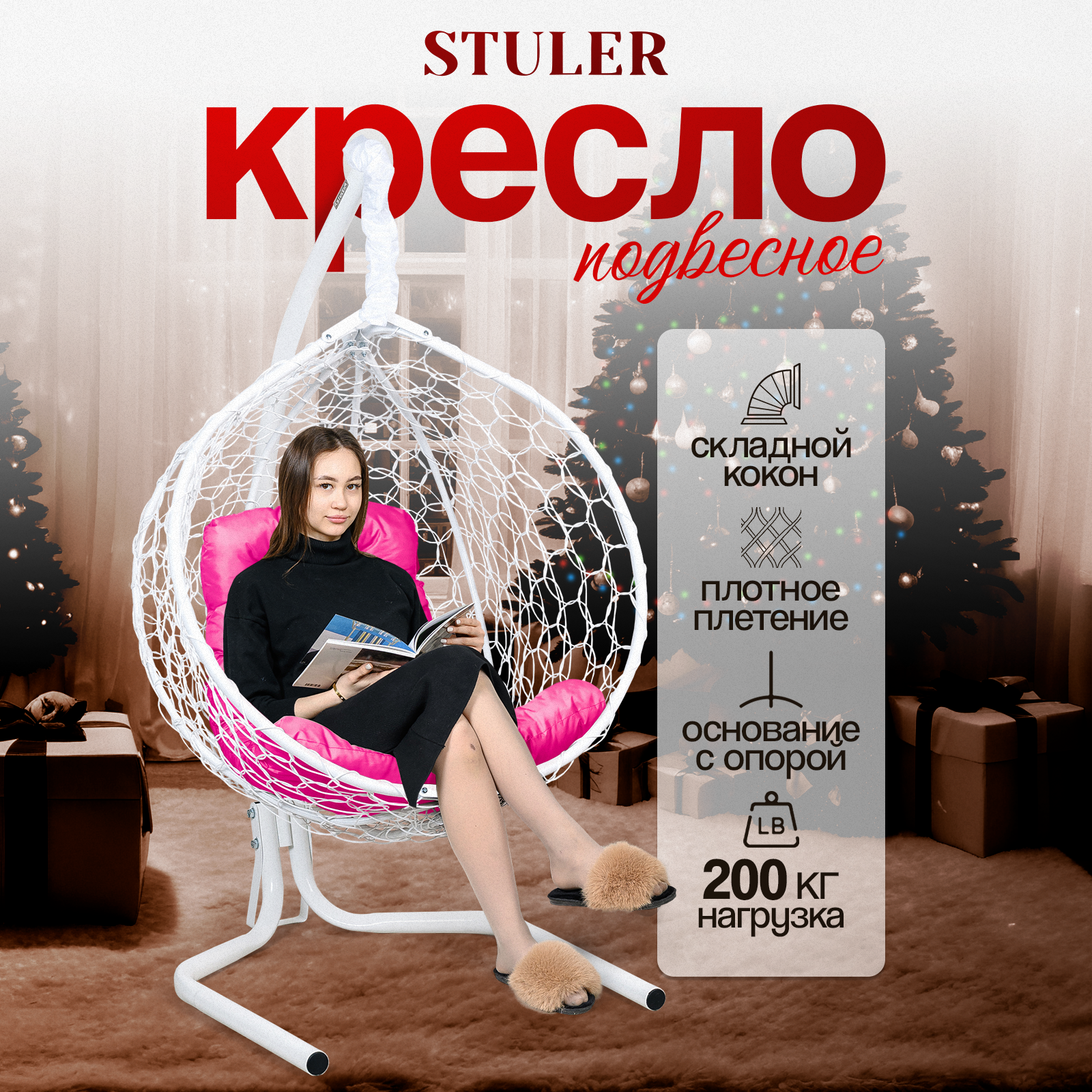 Купить Подвесное кресло-кокон STULER Smile Белый с розовой подушкой-трапецией, 175 х 63 х 105 см для дачи и сада с доставкой по всей России.