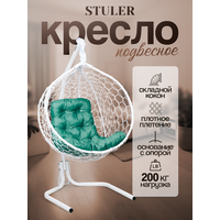 Купить Подвесное кресло-кокон STULER Smile Белый с зеленой подушкой-трапецией, 175 х 63 х 105 см для дачи и сада с доставкой по всей России.