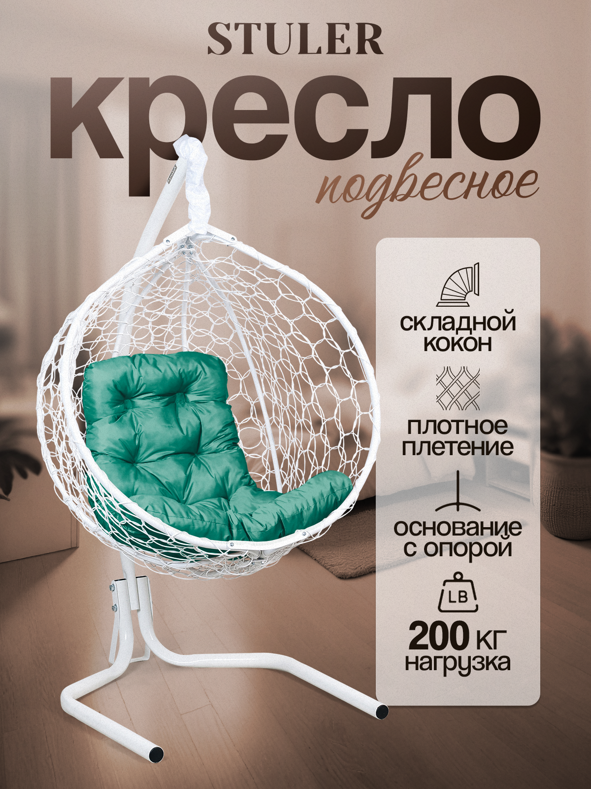 Подвесное кресло-кокон STULER Smile Белый с зеленой подушкой-трапецией, 175 х 63 х 105 см для дачи и сада: сравнение цен, характеристики, фото, актуальное наличие и цены.