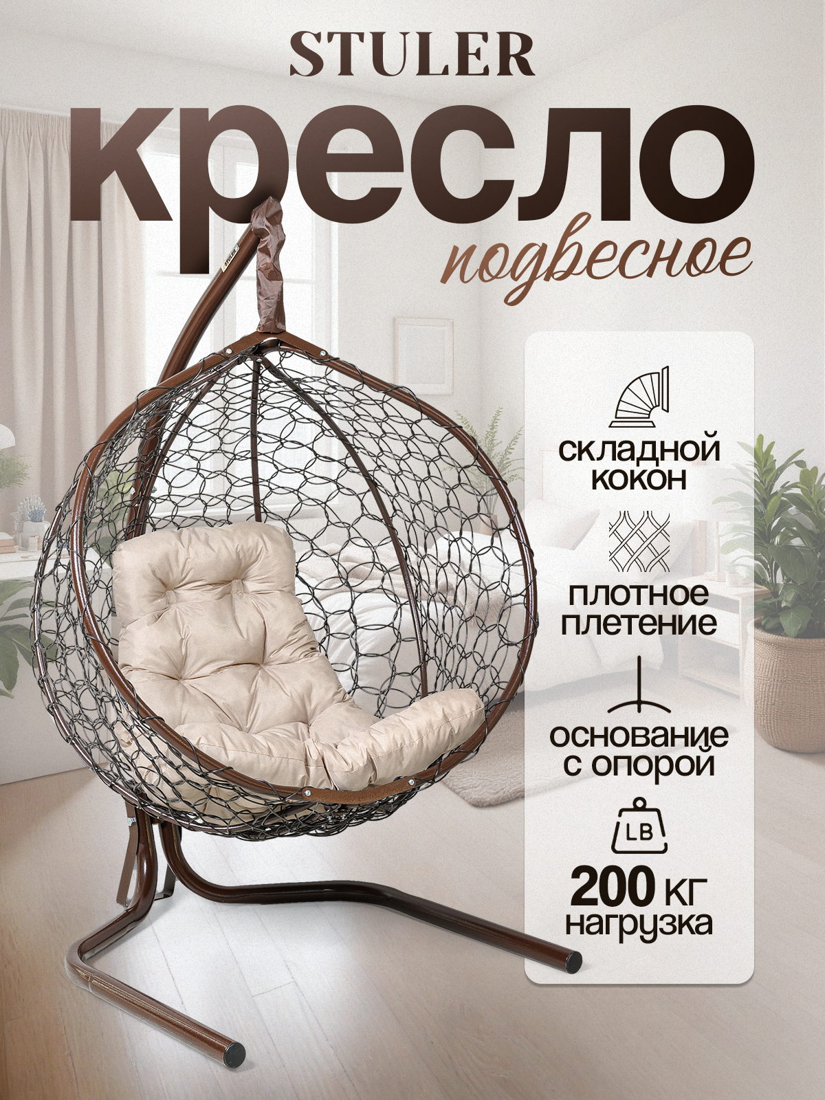 Купить Подвесное кресло-кокон STULER Smile Венге с бежевой подушкой-трапецией, 175 х 63 х 105 см для дачи и сада с доставкой по всей России.