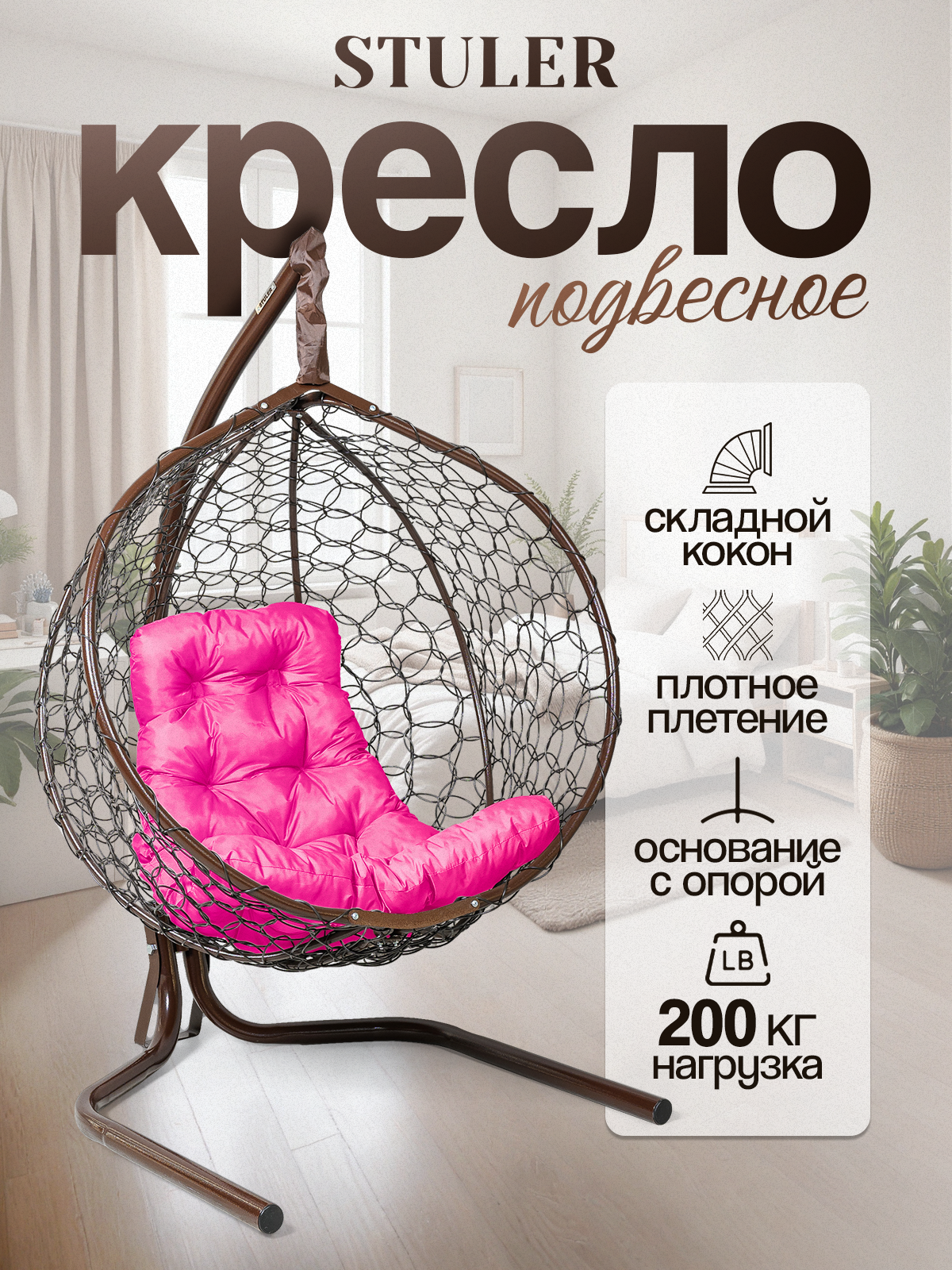 Купить Подвесное кресло-кокон STULER Smile Венге с розовой подушкой-трапецией, 175 х 63 х 105 см для дачи и сада с доставкой по всей России.