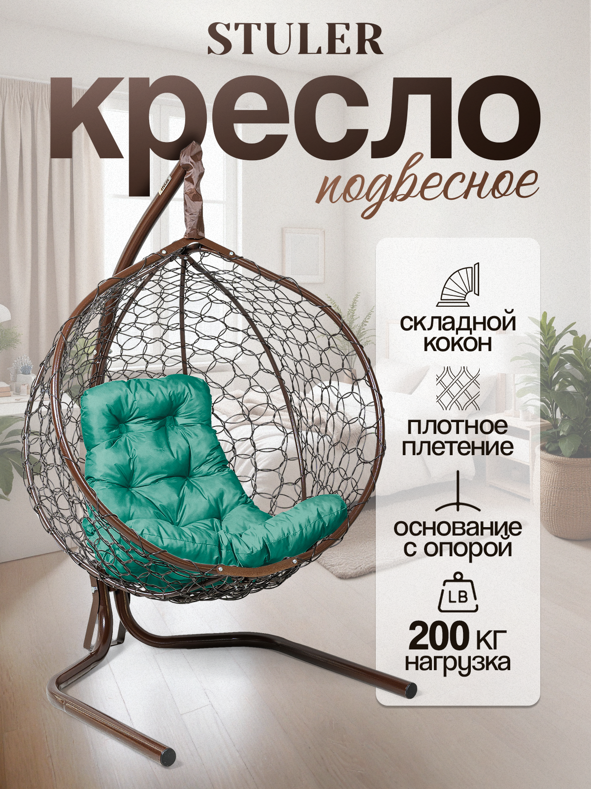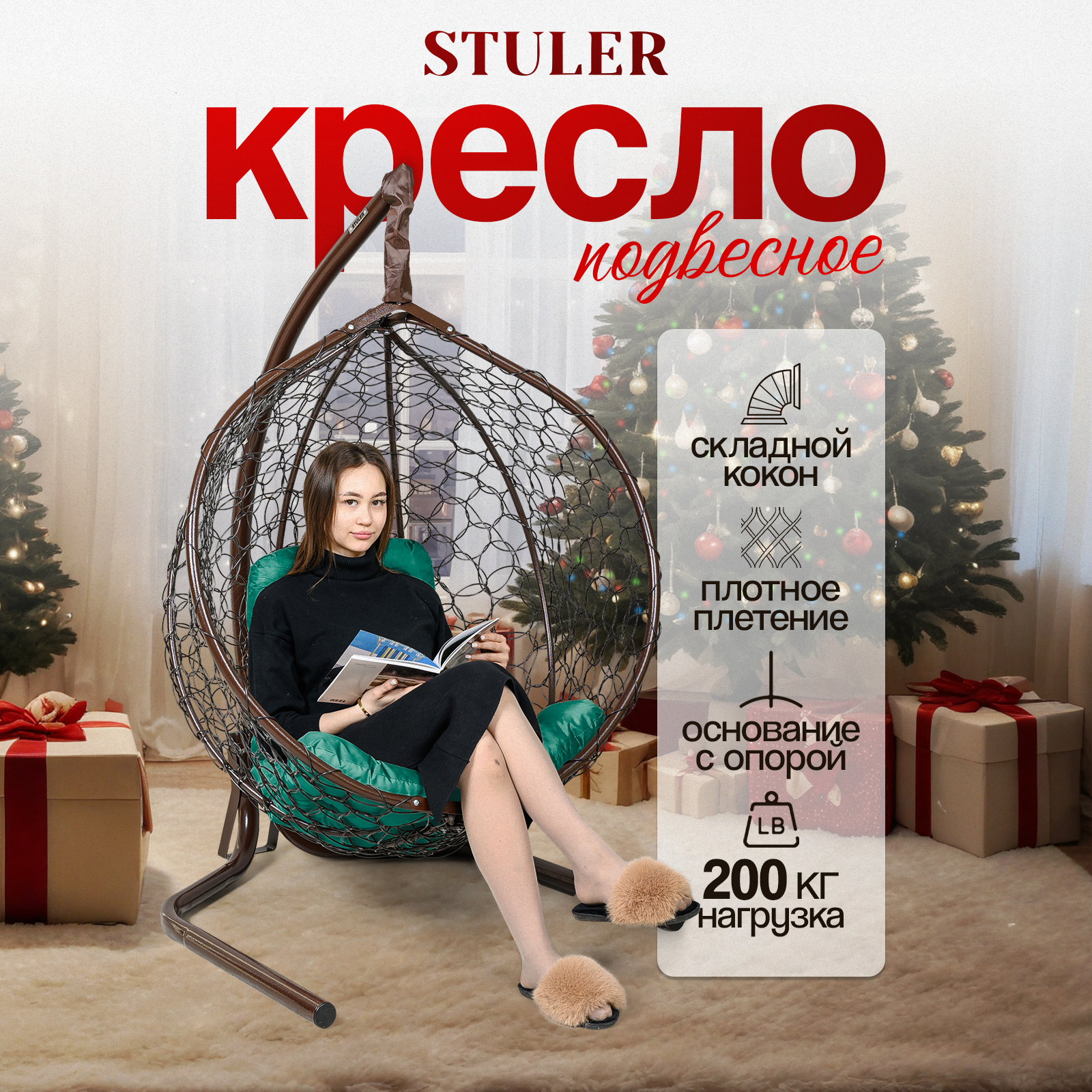 Купить Подвесное кресло-кокон STULER Smile Венге с зеленой подушкой-трапецией, 175х 63 х 105 см для дачи и сада с доставкой по всей России.