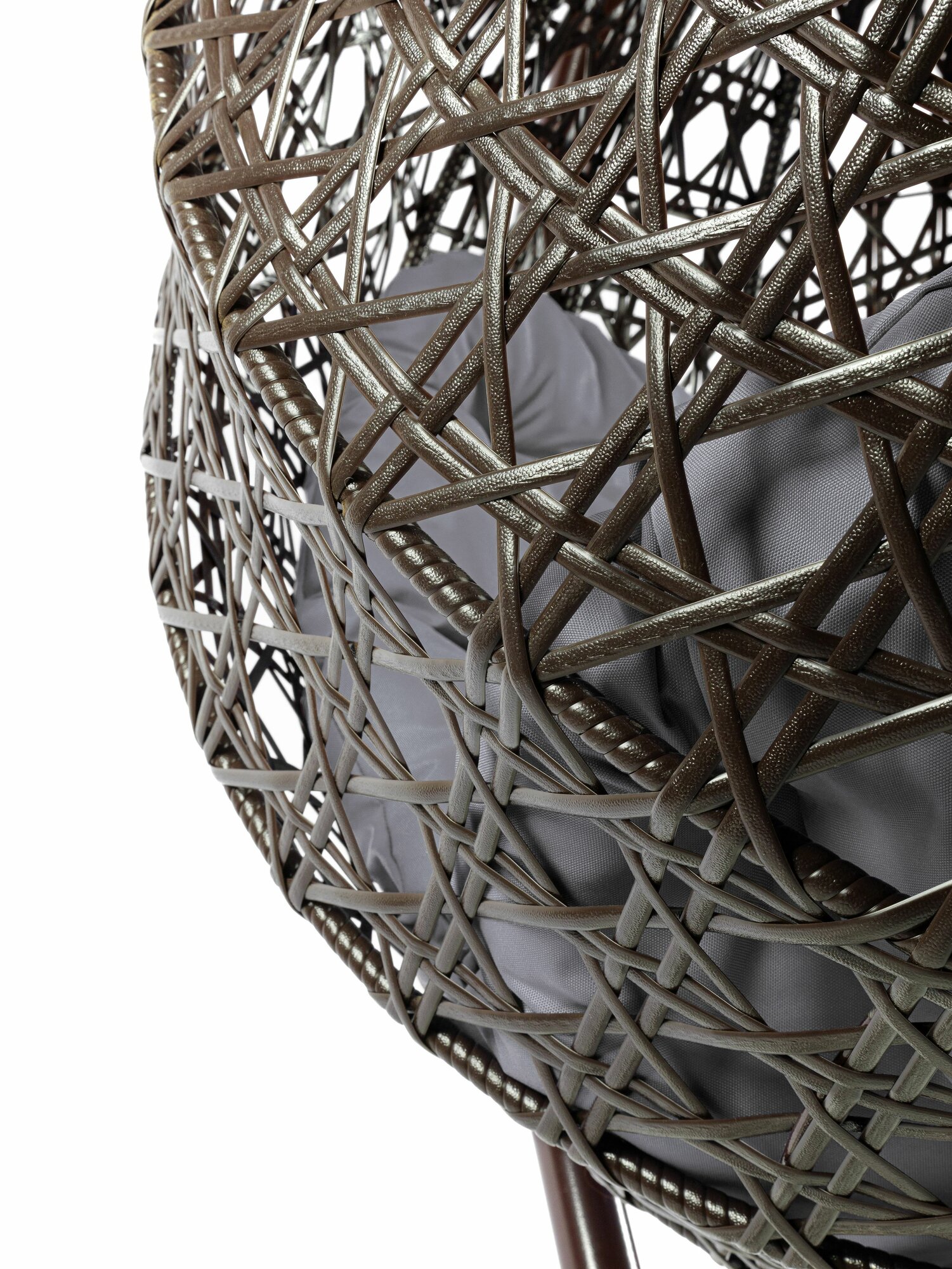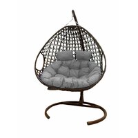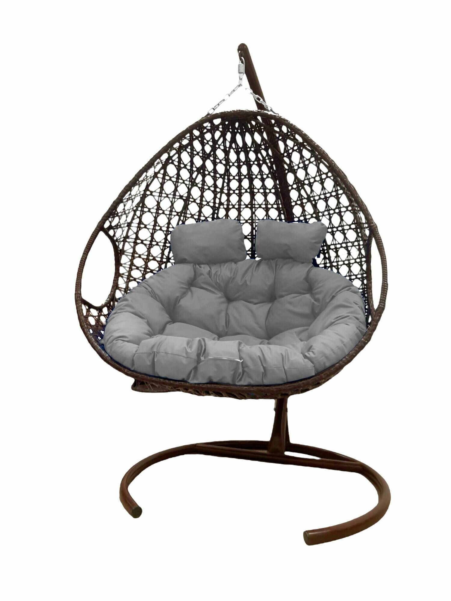 Купить Подвесное кресло для двоих люкс с ротангом коричневое, серая подушка с доставкой по всей России.