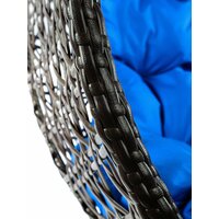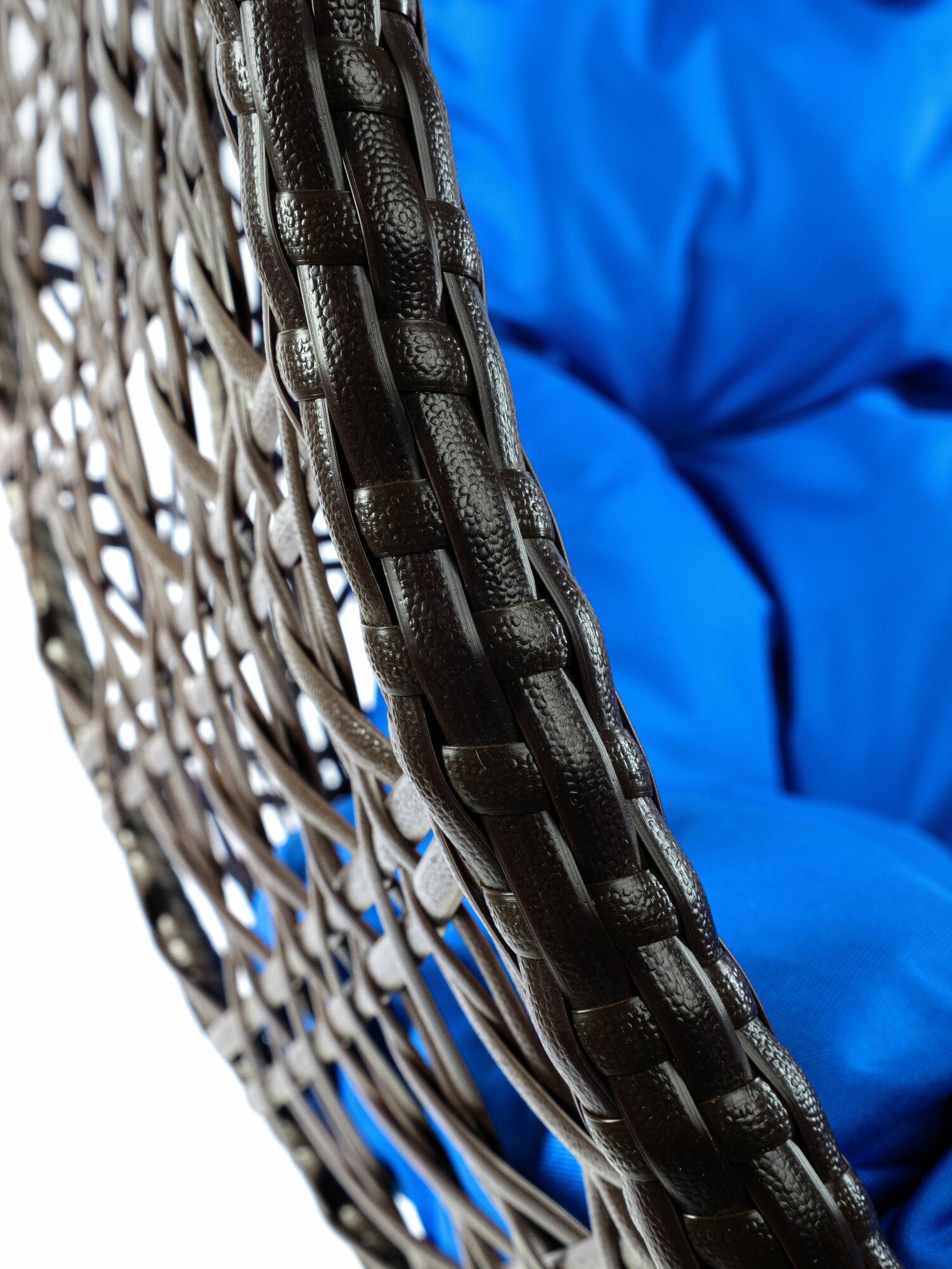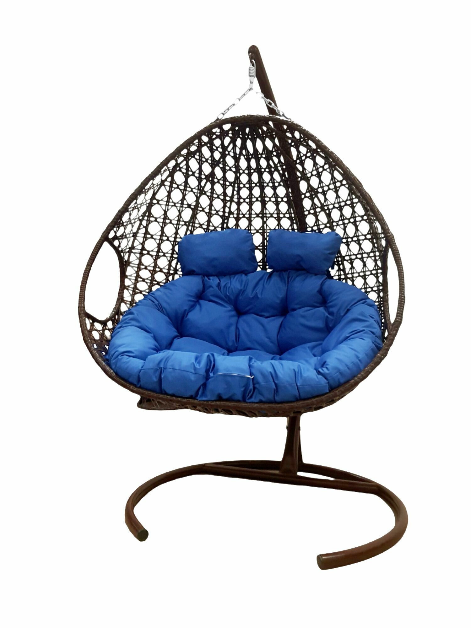 Купить Подвесное кресло для двоих люкс с ротангом коричневое, синяя подушка с доставкой по всей России.