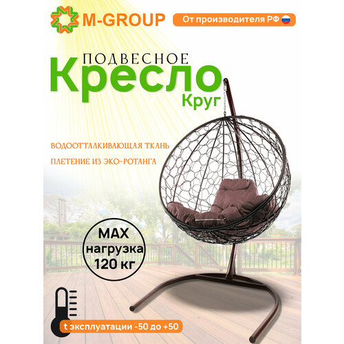 Купить Подвесное кресло Круг ротанг коричневое, коричневая подушка с доставкой по всей России.