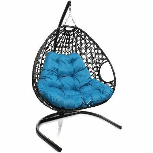 Подвесное кресло M-group для двоих люкс с ротангом чёрное, голубая подушка: сравнение цен, характеристики, фото, актуальное наличие и цены.