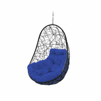 Купить Подвесное кресло овал ротанг черное(без стойки), синяя подушка с доставкой по всей России.