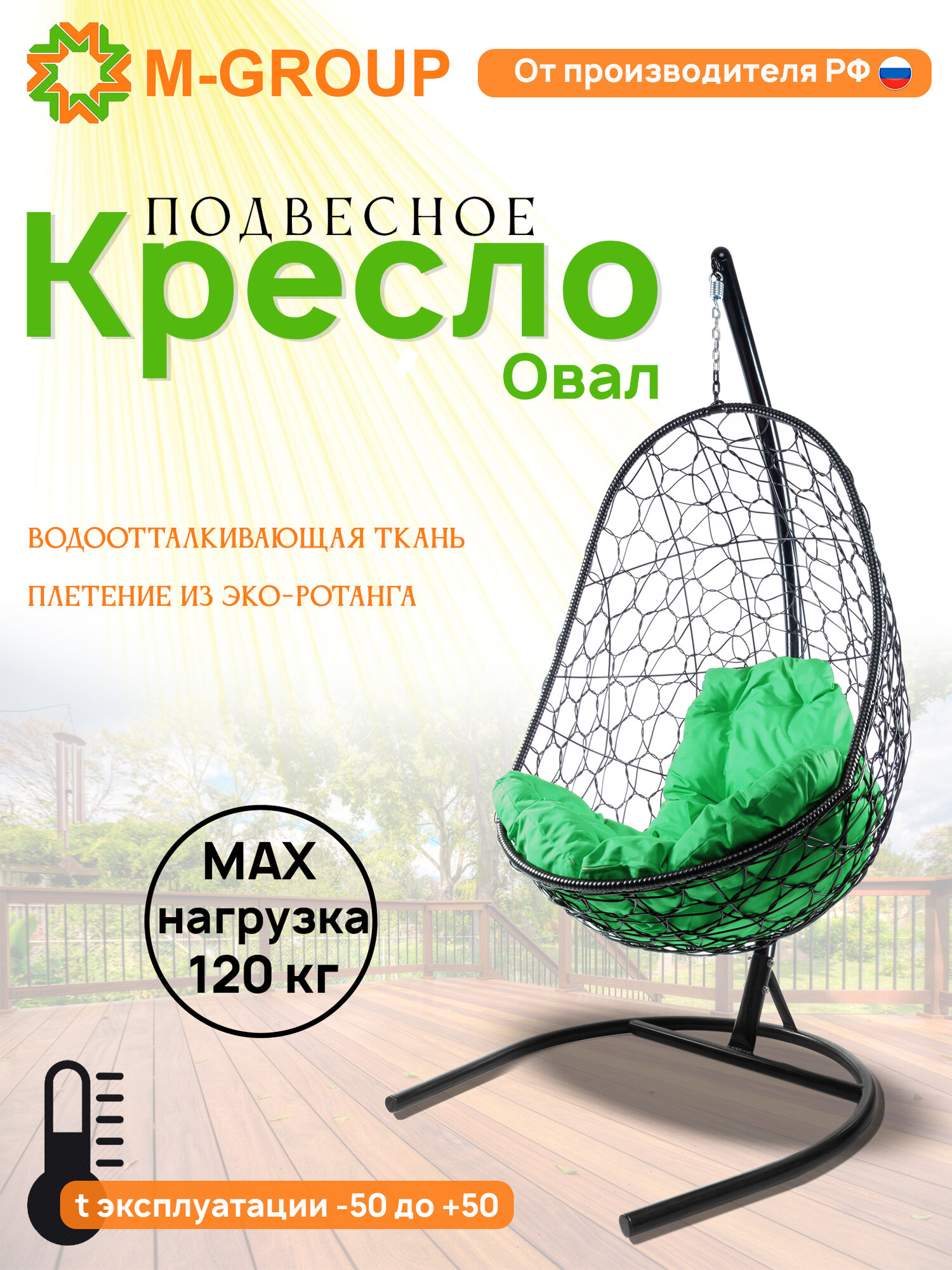 Купить Подвесное кресло «Овал» чёрное с зелёной подушкой с доставкой по всей России.