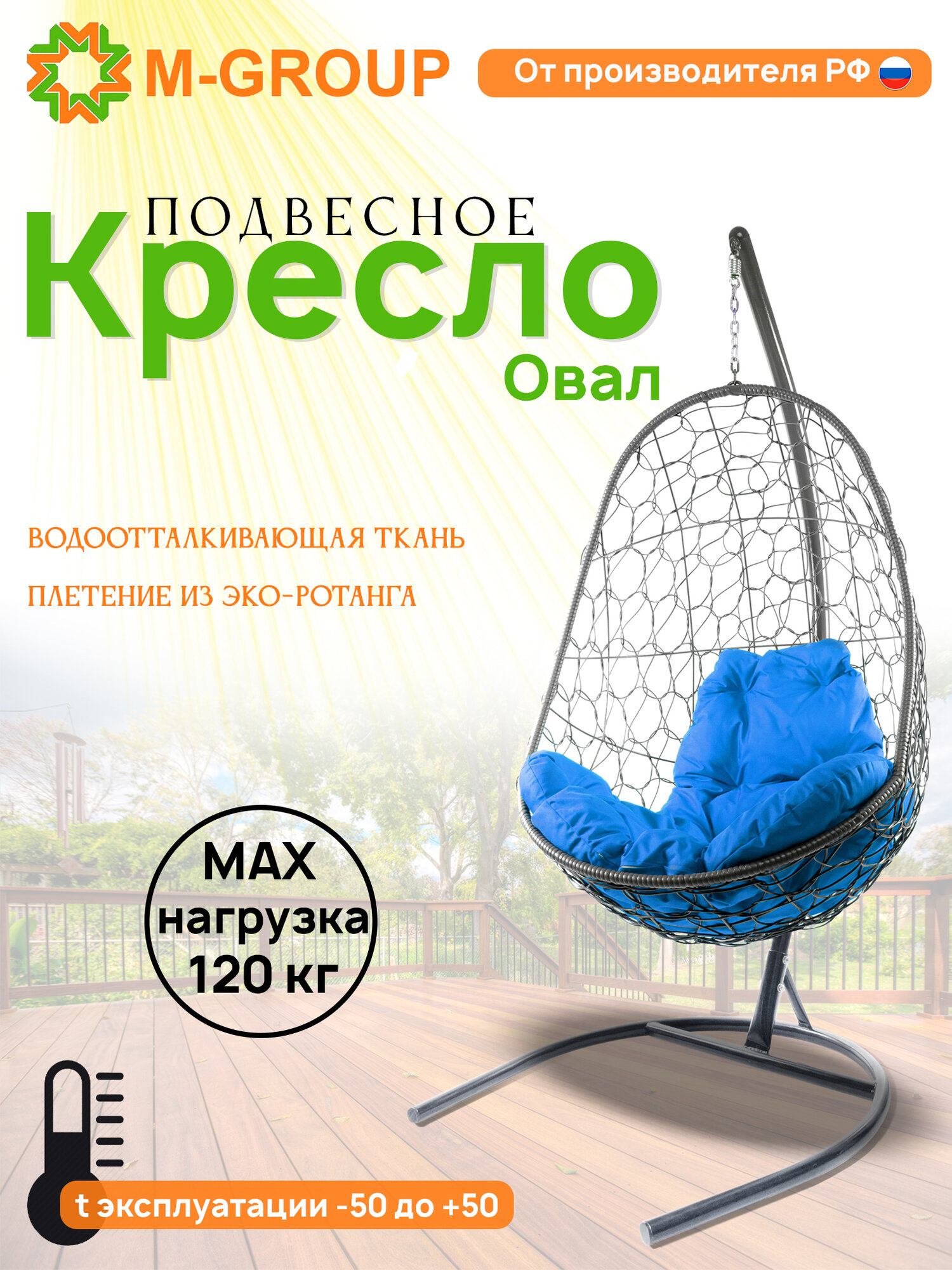 Подвесное кресло овал ротанг серое, синяя подушка: сравнение цен, характеристики, фото, актуальное наличие и цены.