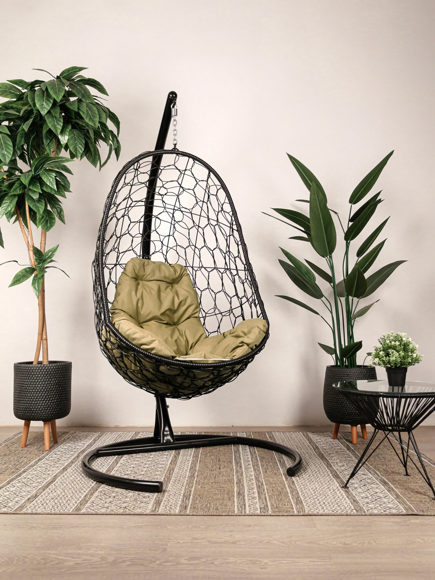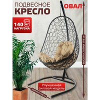 Подвесное кресло овал, с ротангом чёрное, бежевая подушка: сравнение цен, характеристики, фото, актуальное наличие и цены.