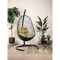 Подвесное кресло овал, с ротангом чёрное, бежевая подушка