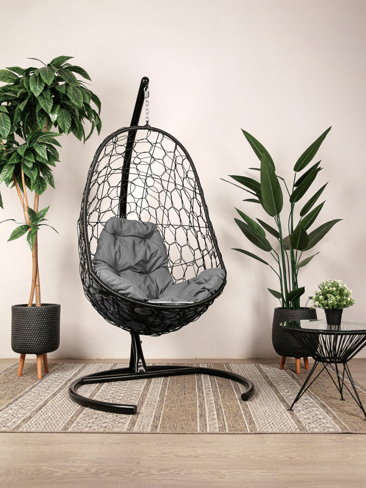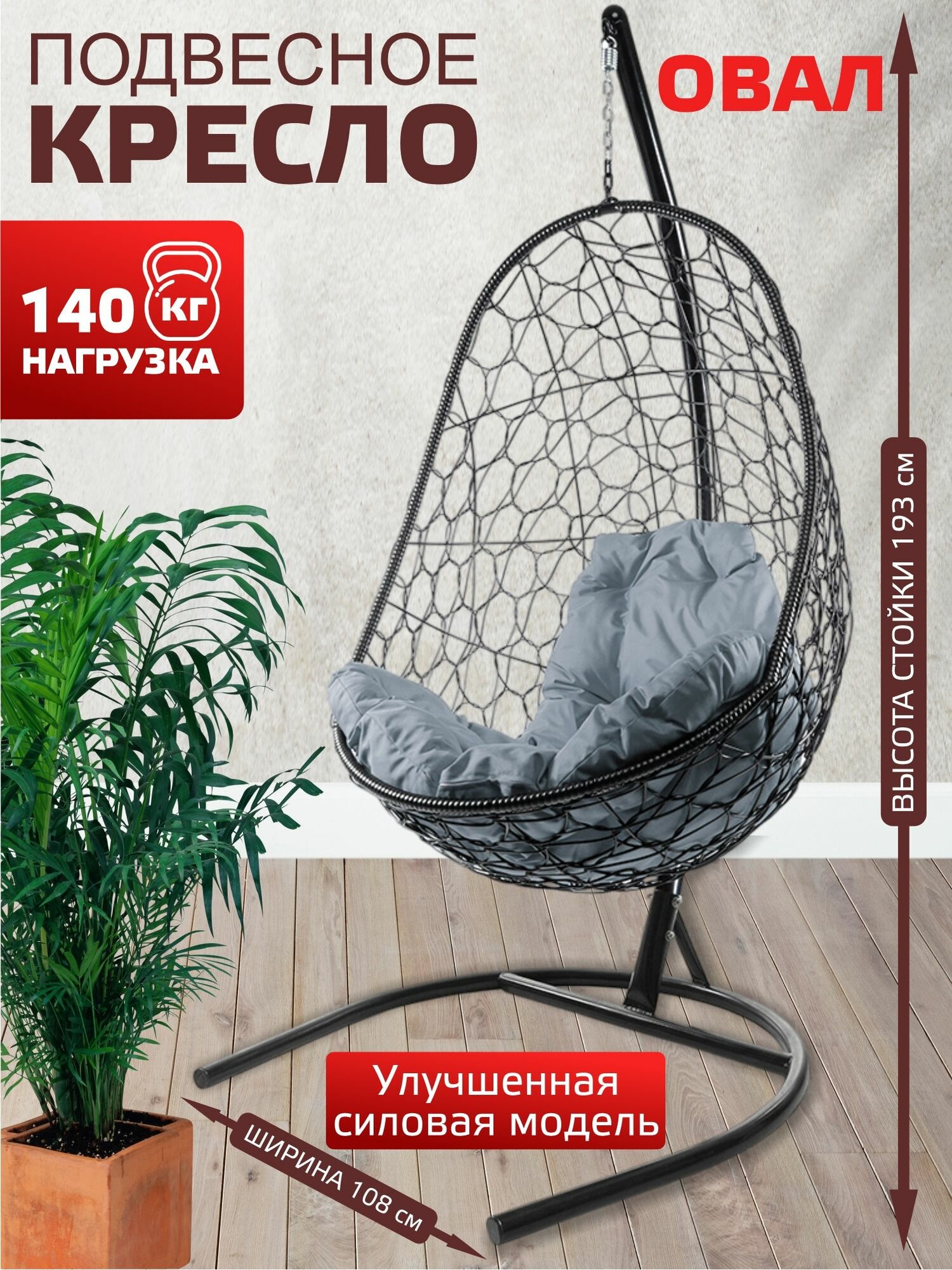 Подвесное кресло овал, с ротангом чёрное, серая подушка: сравнение цен, характеристики, фото, актуальное наличие и цены.