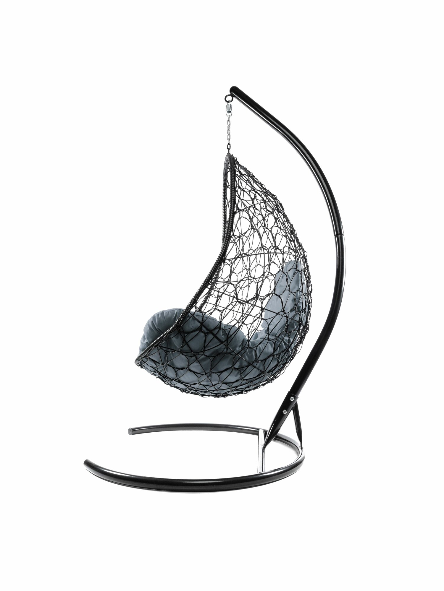 Подвесное кресло овал, с ротангом чёрное, серая подушка