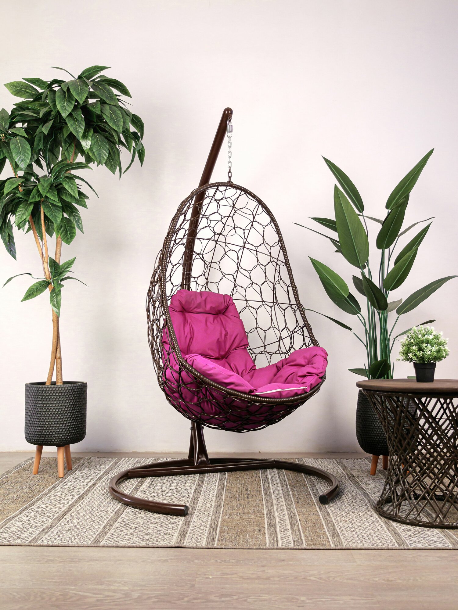 Купить Подвесное кресло овал, с ротангом коричневое, розовая подушка с доставкой по всей России. Подвесное кресло овал, с ротангом коричневое, розовая подушка: сравнение цен, характеристики, фото, актуальное наличие и цены.