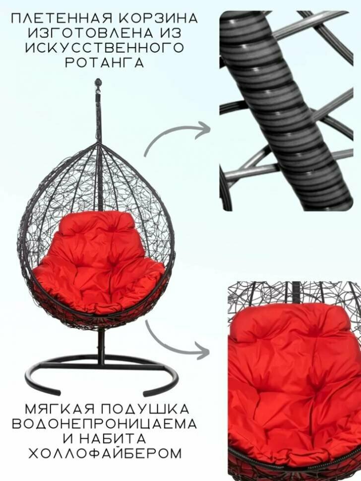 Купить Подвесное кресло в виде капли Tropica Black, красная подушка с доставкой по всей России. Подвесное кресло в виде капли Tropica Black, красная подушка: сравнение цен, характеристики, фото, актуальное наличие и цены.