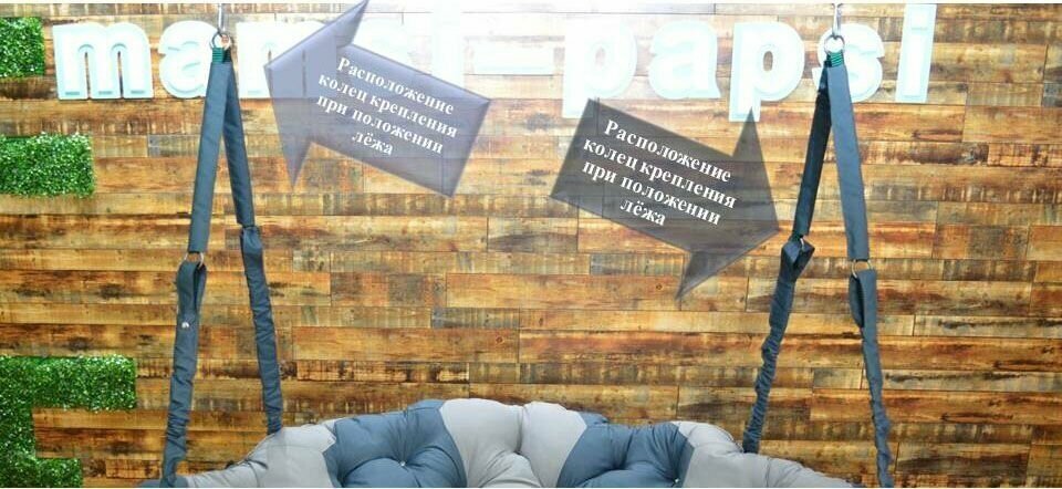 Подвесные диваны бренда «Mamsi-Papsi» созданы на профессиональном оборудовании. Качество каркаса изделия помогает выдерживать вес до 200 кг. Изделие выполнено из ткани Оксфорд, ткань водоотталкивающая, приятная к телу. Подвесные диваны имеют 3 положения: 1) сидя, 2) лёжа, 3) гамак. Благодаря регулировке колец на стропах, диван меняет положение наклона спинки. Изделие отлично впишется как в Ваш домашний интерьер, так и в сад. В комнате крепится к потолку, в комплект крепления входит: 2 шт. Анкера по бетону, 4 шт. карабина, 2шт. цепи по 50 см. Высота подвесного дивана до крепления 130см (с креплением 190см)