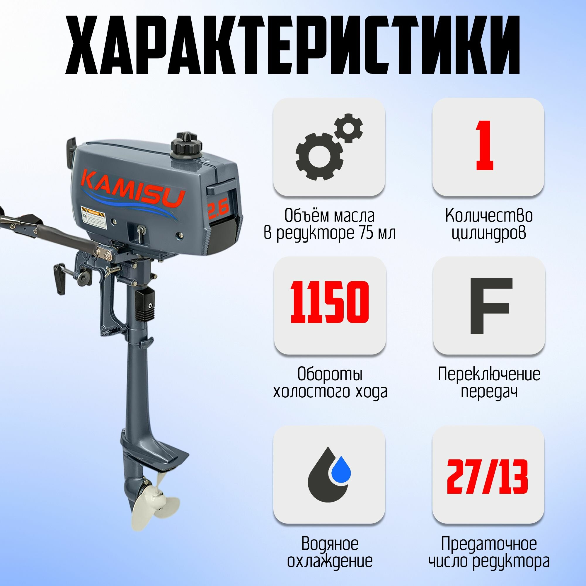 Купить Лодочный мотор KAMISU T2.6BMS, двухтактный, 2.6 л.с. с доставкой по всей России. Лодочный мотор KAMISU T2.6BMS, двухтактный, 2.6 л.с.: сравнение цен, характеристики, фото, актуальное наличие и цены.