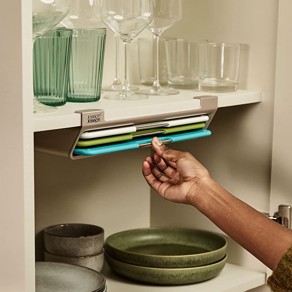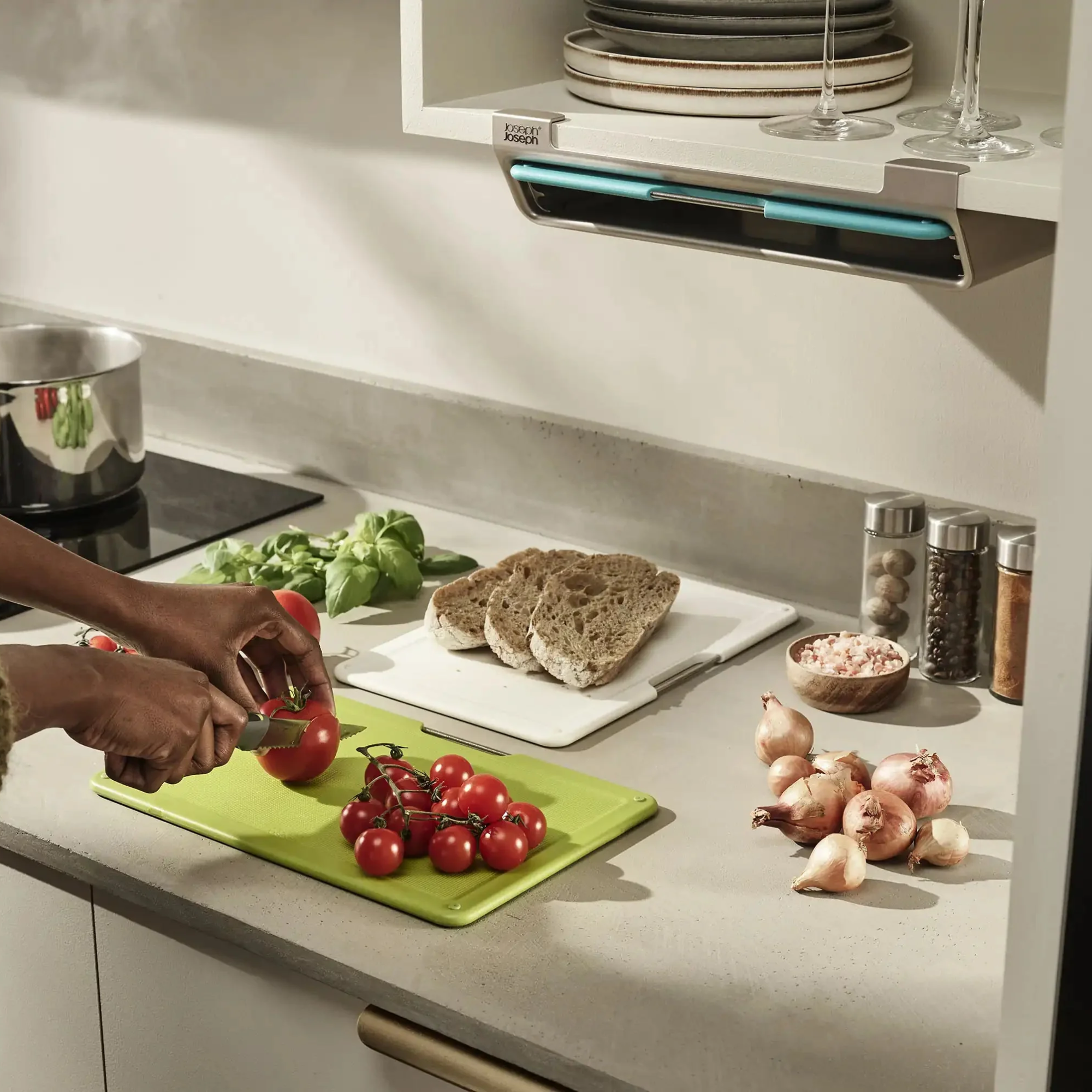 Хранить под рукой, но не загромождать поверхность — с набором подвесных разделочных досок Folio Slim нет ничего невозможного. Вы легко разместите их в абсолютно любой кухне, потому что хранятся они не на полках и шкафах и не внутри них, а — внимание! — под ними. Идеальный вариант для тех, кто ценит каждый сантиметр своей квартиры!