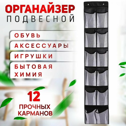 Подвесной органайзер для хранения вещей, 12 ячеек, черный с белыми кармашками: сравнение цен, характеристики, фото, актуальное наличие и цены.
