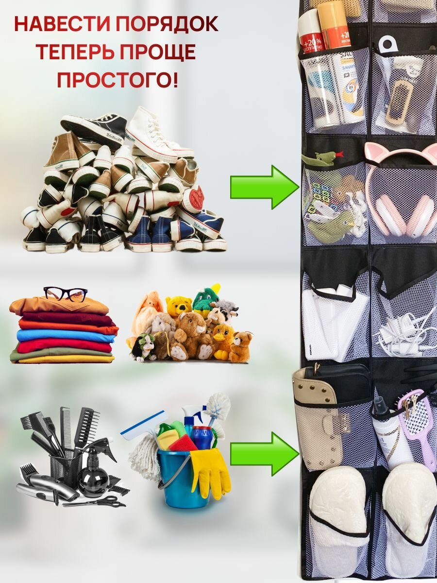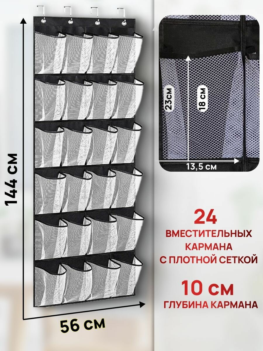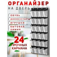 Подвесной органайзер для хранения вещей на дверь, в шкаф. 24 ячеек, черный с белыми кармашками: сравнение цен, характеристики, фото, актуальное наличие и цены.