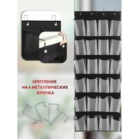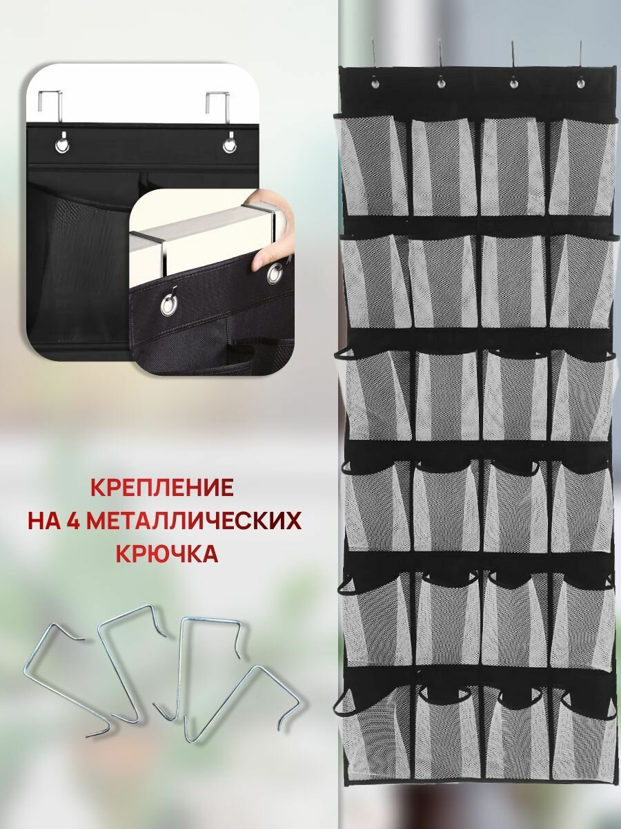 Купить Подвесной органайзер для хранения вещей на дверь, в шкаф. 24 ячеек, черный с белыми кармашками с доставкой по всей России.
