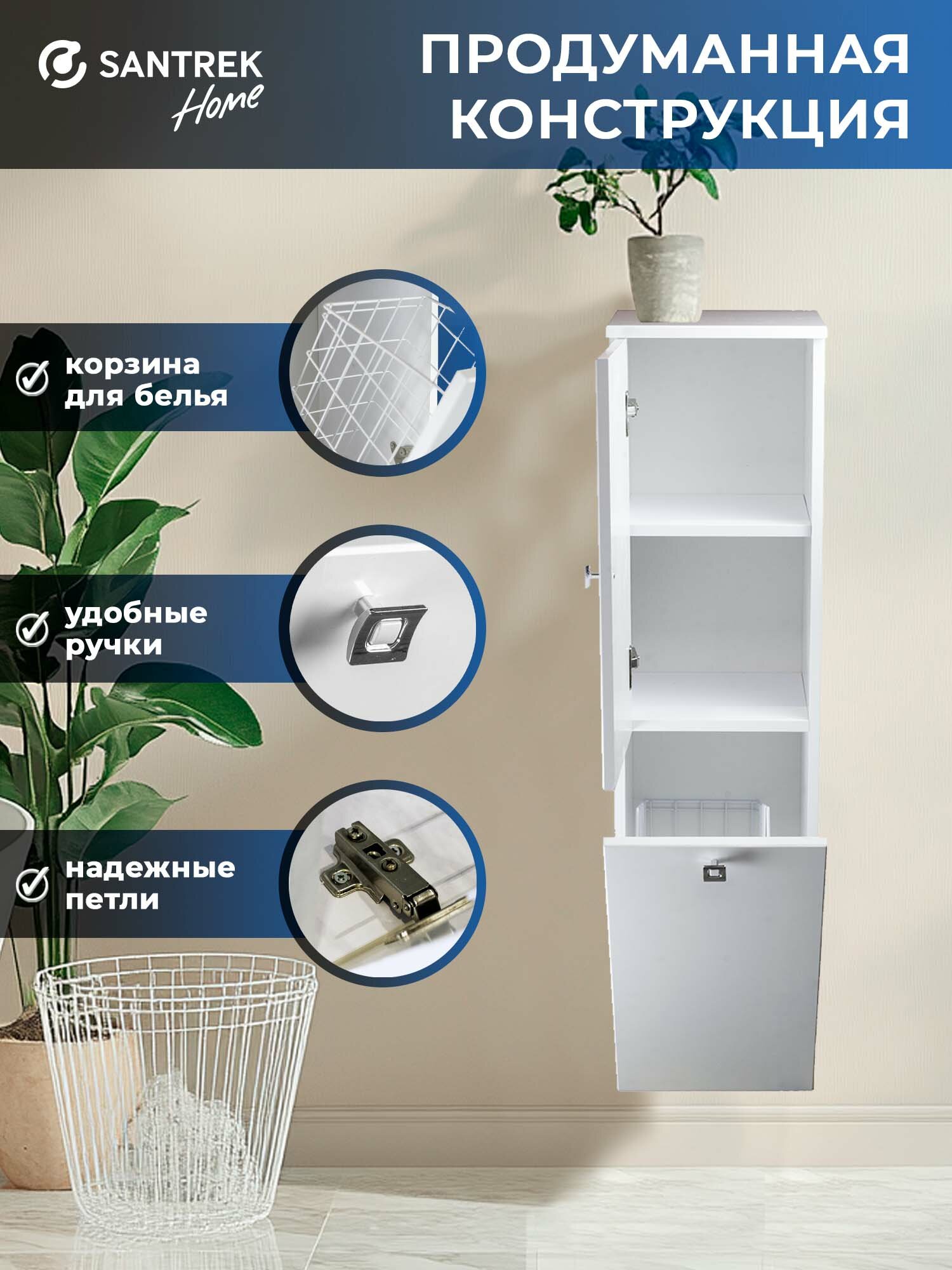 Подвесной шкаф пенал для ванной комнаты SANTREK 1 дверь (белый глянец) левый 300*1114*300: сравнение цен, характеристики, фото, актуальное наличие и цены.
