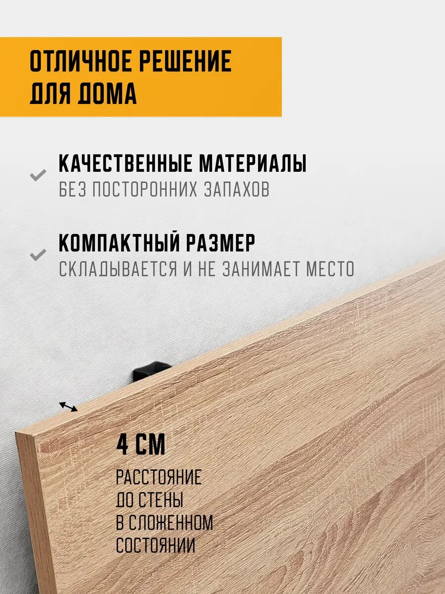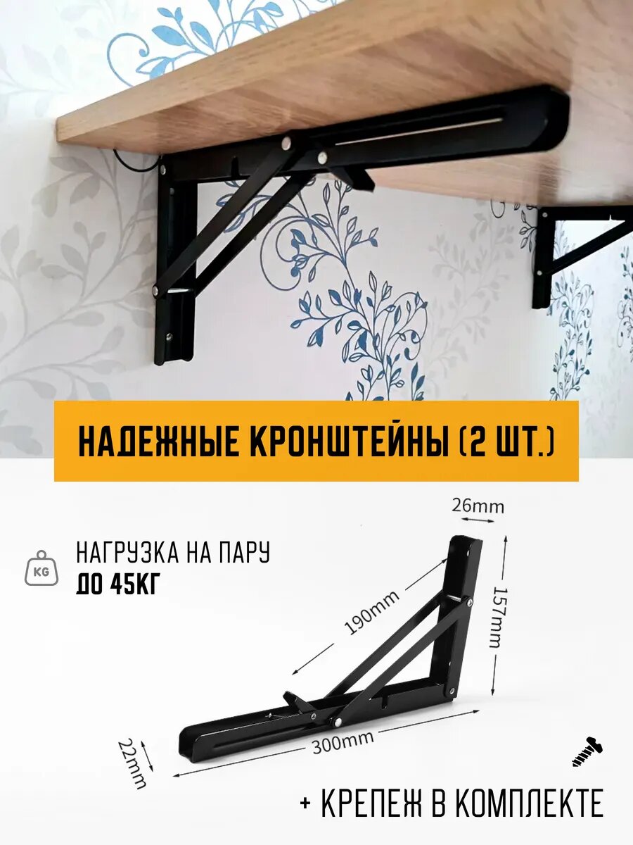 Кронштейны из металла выдерживают нагрузку до 45кг и обеспечивают долговечность конструкции, а столешница из ЛДСП легко чистится и подходит для повседневного использования.