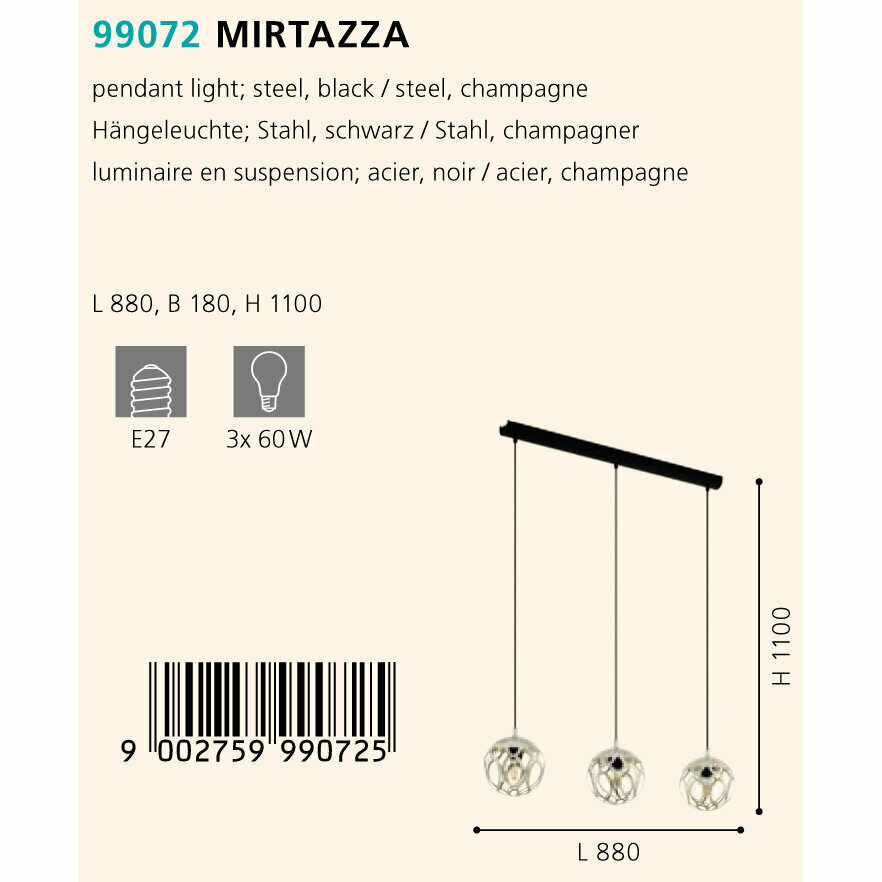 Купить Подвесной светильник Eglo промо Mirtazza 99072 с доставкой по всей России. Подвесной светильник Eglo промо Mirtazza 99072: сравнение цен, характеристики, фото, актуальное наличие и цены.
