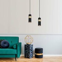 Подвесной светильник 50096/1 черный/золото предназначен для создания дополнительного освещения и акцентной подсветки в современных интерьерах. Светильник со сменными лампами GU10 создаст качественное освещение на площади 2 м кв. и подсветит рабочие зоны на кухне, в зале, в кабинете и в других местах. Однорожковый светильник с металлическим плафоном оборудован системой регулировки высоты подвеса, позволяющей размещать изделие на разных уровнях, уменьшая или увеличивая угол рассеивания светового потока. Накладной светильник просто устанавливается на натяжных потолках при помощи монтажной планки.