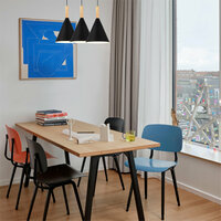 Светильник выполнен в черном цвете, что позволяет ему гармонично вписаться в любой интерьер. Арматура и плафоны изготовлены из металла, что гарантирует долговечность и надежность конструкции. Плафоны имеют форму конуса и круглую форму, что придает светильнику современный и стильный вид.