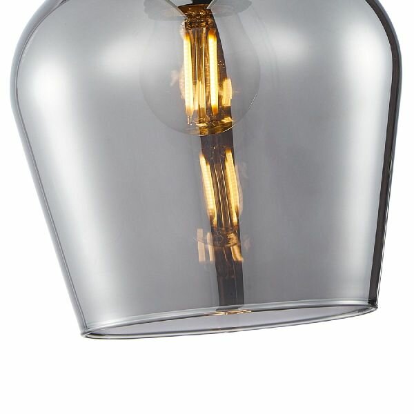 Светильник выполнен в современном стиле модерн, что позволяет ему гармонично вписаться в любой интерьер. Арматура светильника изготовлена из металла, а плафон - из стекла дымчатого цвета, что придает ему изысканный и элегантный вид.