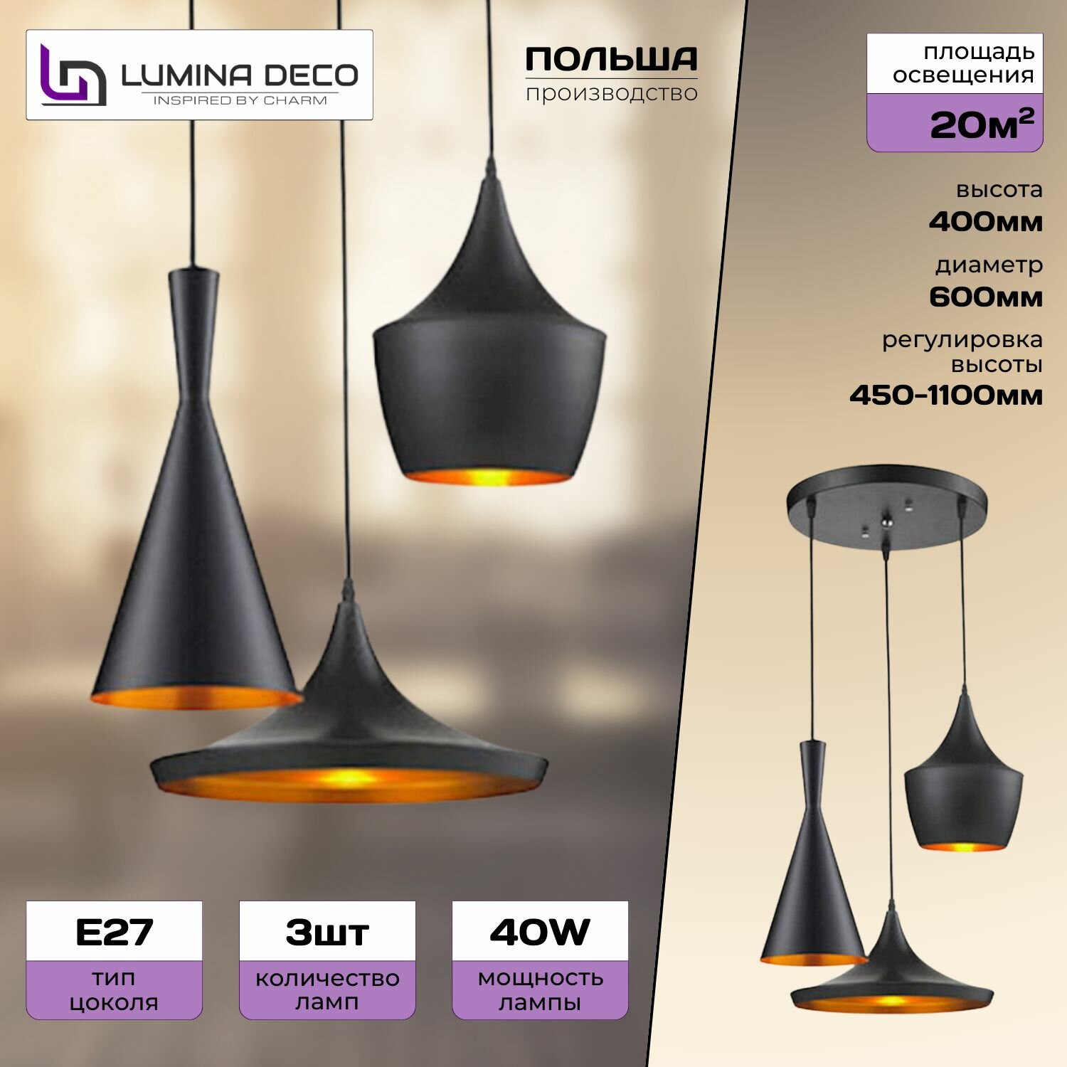 Цвет плафонов: Черный