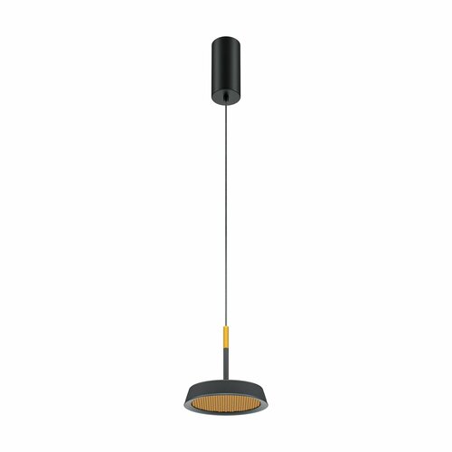 Металлический корпус, цветовая палитра - черный, белый, золото и терракотовый. Два вида плафонов: «таблетка» с графичным рельефом из ассиметричных линий; «таблетка» + идеально-гладкая металлическая «тарелка». Дизайн вдохновлен супрематической эстетикой. LED-источник света, цветовая температура - 3000К. Регулируемый провод - 3 метра.