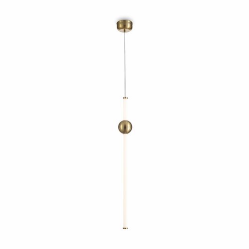 Арматура — тонкая металлическая, цвет — чёрный + латунь. Оригинальная конструкция. Три плафона-цилиндра с затемнённым стеклом закреплены на металлической оси cо встроенным LEDисточником света. Тренд «invisible light». Цветовая температура — 3000 К. Регулируемая высота.