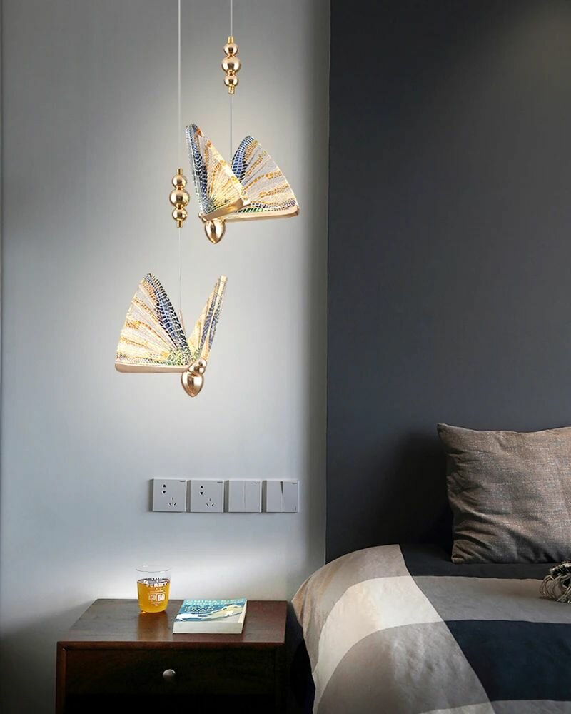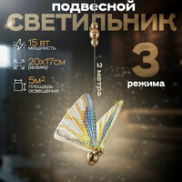 Светильник выполнен из высококачественных материалов, что обеспечивает его долговечность и надёжность. Форма бабочки придаёт ему изящный и лёгкий вид, а также позволяет легко сочетать его с различными стилями оформления. Благодаря своей конструкции, светильник обеспечивает равномерное распределение света по всему пространству, создавая уютную и комфортную атмосферу. Он идеально подходит для использования в гостиной, спальне или детской комнате, где требуется мягкое и приятное освещение. Этот подвесной потолочный светильник станет отличным выбором для тех, кто ценит красоту, элегантность и функциональность в одном изделии. Он будет радовать вас своим внешним видом и обеспечивать комфортное освещение на протяжении многих лет.