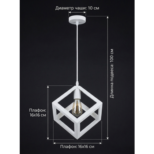 Подвесной светильник потолочный в стиле Loft, подойдет для освещения жилых помещений над столом, над барной стойкой, дизайн модели гармонично вписывается в интерьеры баров, кафе и ресторанов. Стильная, яркая, подвесная люстра в стиле лофт подойдет под все виды потолков: натяжной, гипсокартон, бетон и дерево. Светильник потолочный идеально подойдет для гостиной комнаты, спальни, детской и кухни. Подвес рассчитан на освещение помещения площадью до 10 кв. м, в зависимости от мощности используемых ламп. Внимание: В светильнике могут быть использованы только светодиодные и филаментные лампы с цоколем Е - 27. Лампочки в комплект не входят! Размер плафона: 16* 16 см. Высота шнура в светильнике может быть отрегулирована по Вашему желанию. Максимальная длина шнура 100 см. Степень влагозащиты IP 20, светильник не подходит для влажных помещений. Материалы: корпус - металлический.