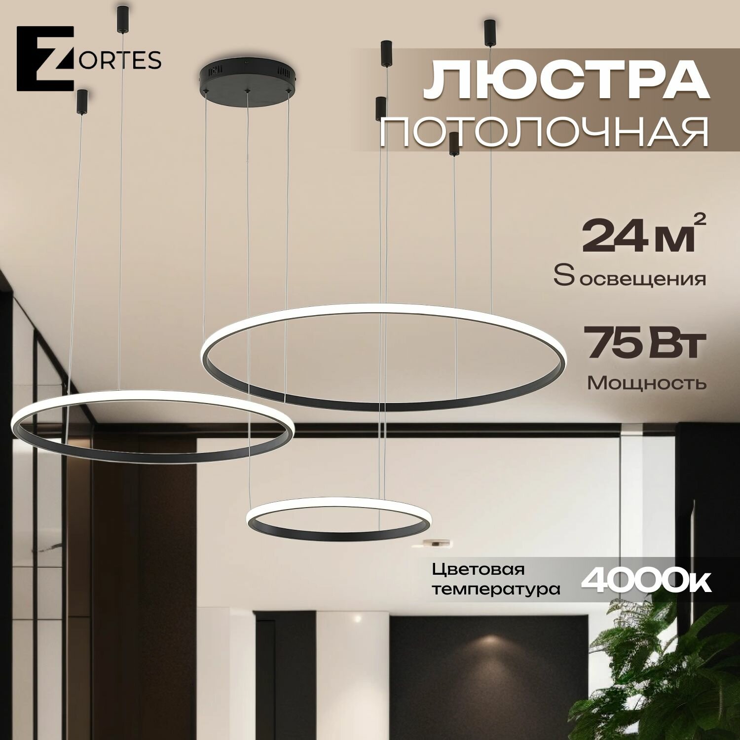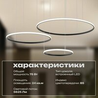 Светильник подвесной, ZORTES RINGOLIGHT, Мощность- 75Вт, Тип лампы -Встроенный LED, Цвет — Антрацит, Диаметр 200, 400, 600мм: сравнение цен, характеристики, фото, актуальное наличие и цены.