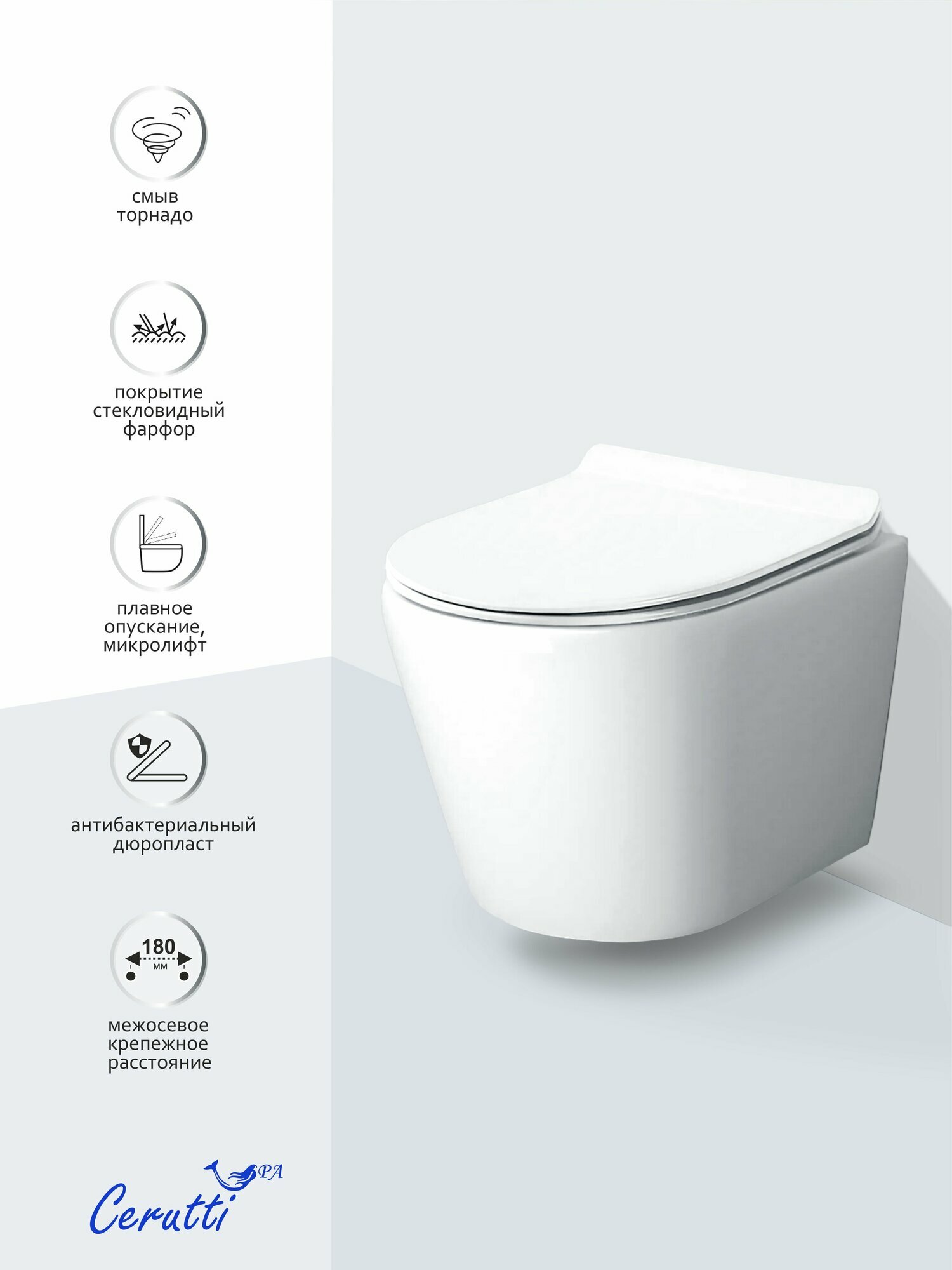 Подвесной унитаз Ceruttispa LUIGI Aria Tornado (490x370x370) торнадо, безободковый, микролифт, белый: сравнение цен, характеристики, фото, актуальное наличие и цены.