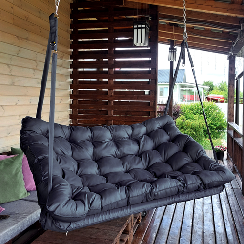 Купить Подвесные качели, качели садовые, диван 180*100, качели для дачи, уличные качели серая с серой подушкой с доставкой по всей России.