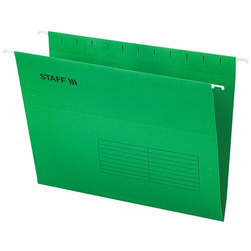Подвесные папки формата A4 STAFF предназначены для размещения в подвесной регистратуре (по бокам имеются специальные крючки). Позволяют организовать хранение данных большой информационной базы. Папки V-образной формы изготовлены из высококачественного картона зеленого цвета плотностью 195 г/м2 и металлических крючков. Обладают повышенной прочностью. Вместимость до 80 листов. Размер папки без крючков составляет 310х240 мм, а с крючками - 350х240 мм. В комплект входят 10 папок, а также 10 прозрачных пластиковых табуляторов с ярлычками. С подвесными папками ваши документы всегда будут на виду и под рукой. Держите важную информацию организованной и доступной. Приобретайте подвесные папки STAFF и повысьте продуктивность своего рабочего процесса уже сегодня.