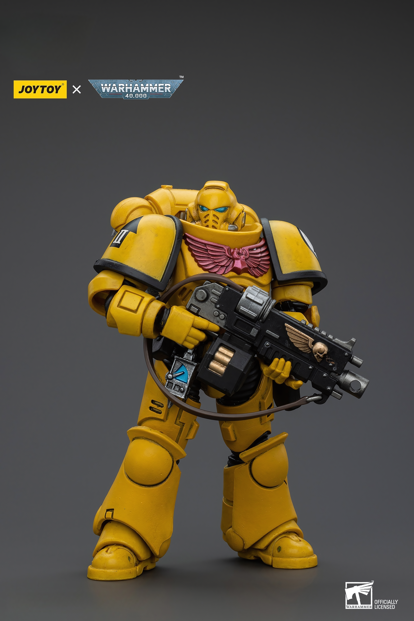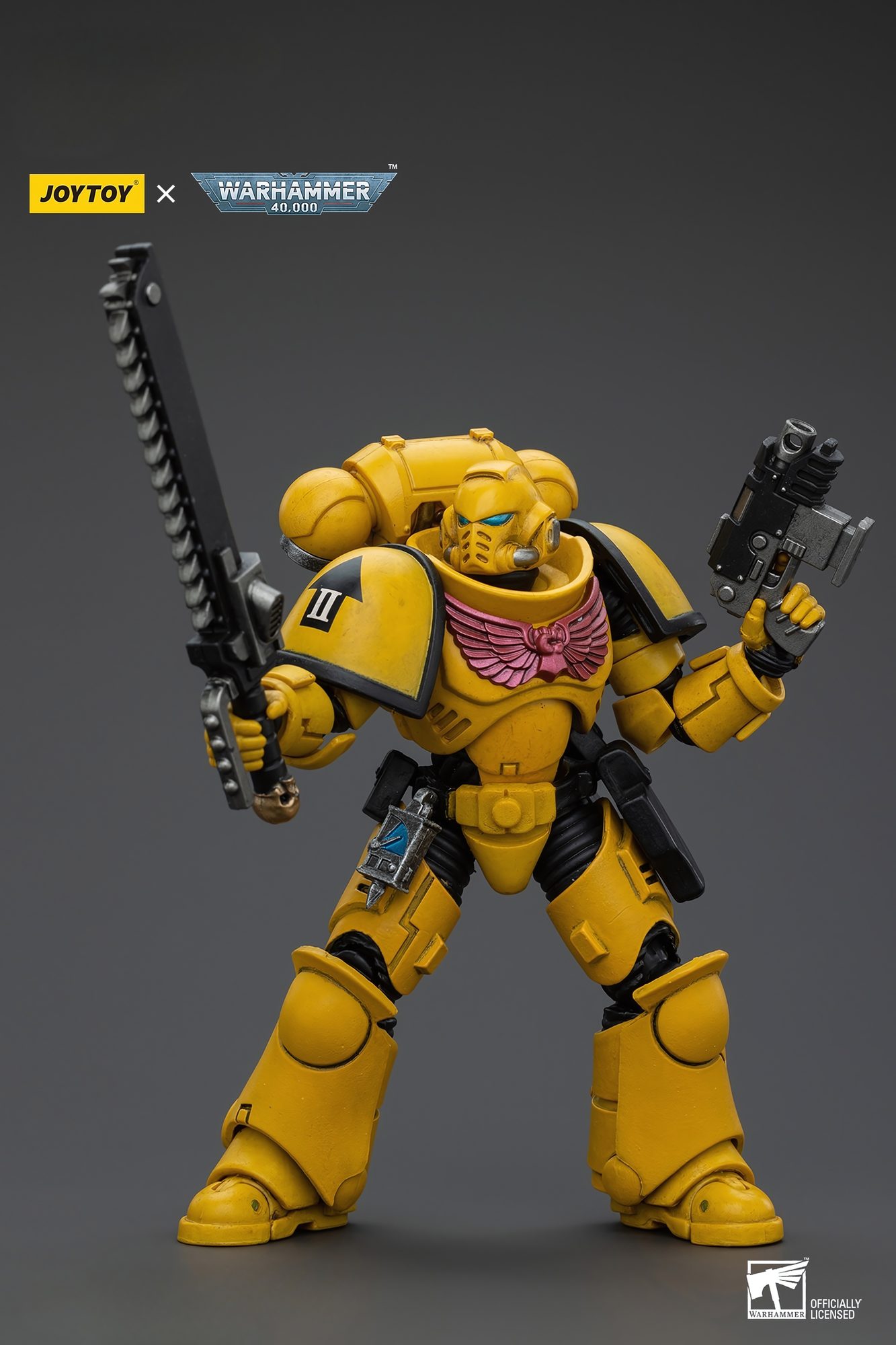 Подвижная фигурка Imperial Fists Intercessors из популярной игры Warhammer 40.000 представляет собой реалистичную реплику одного из персонажей.
