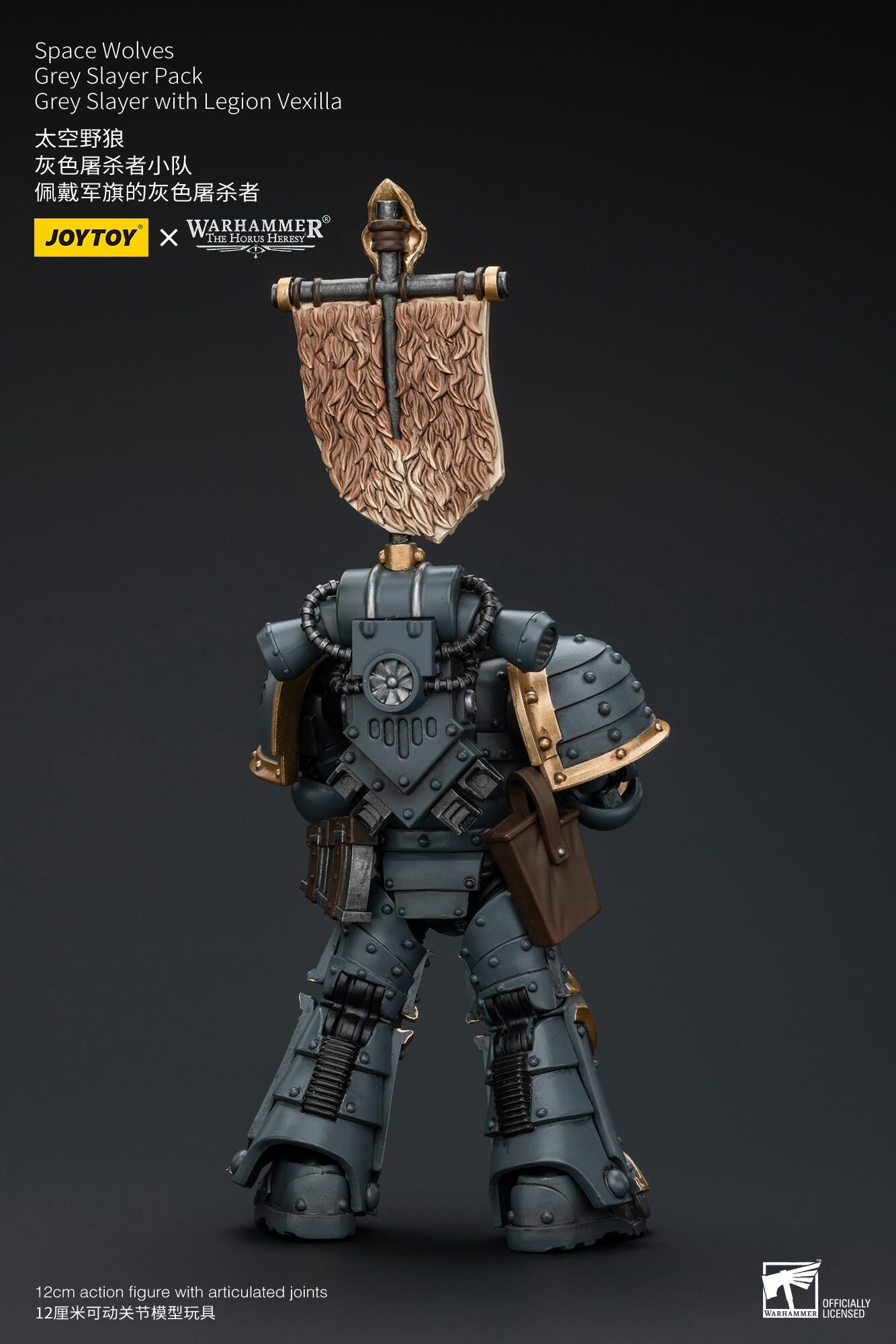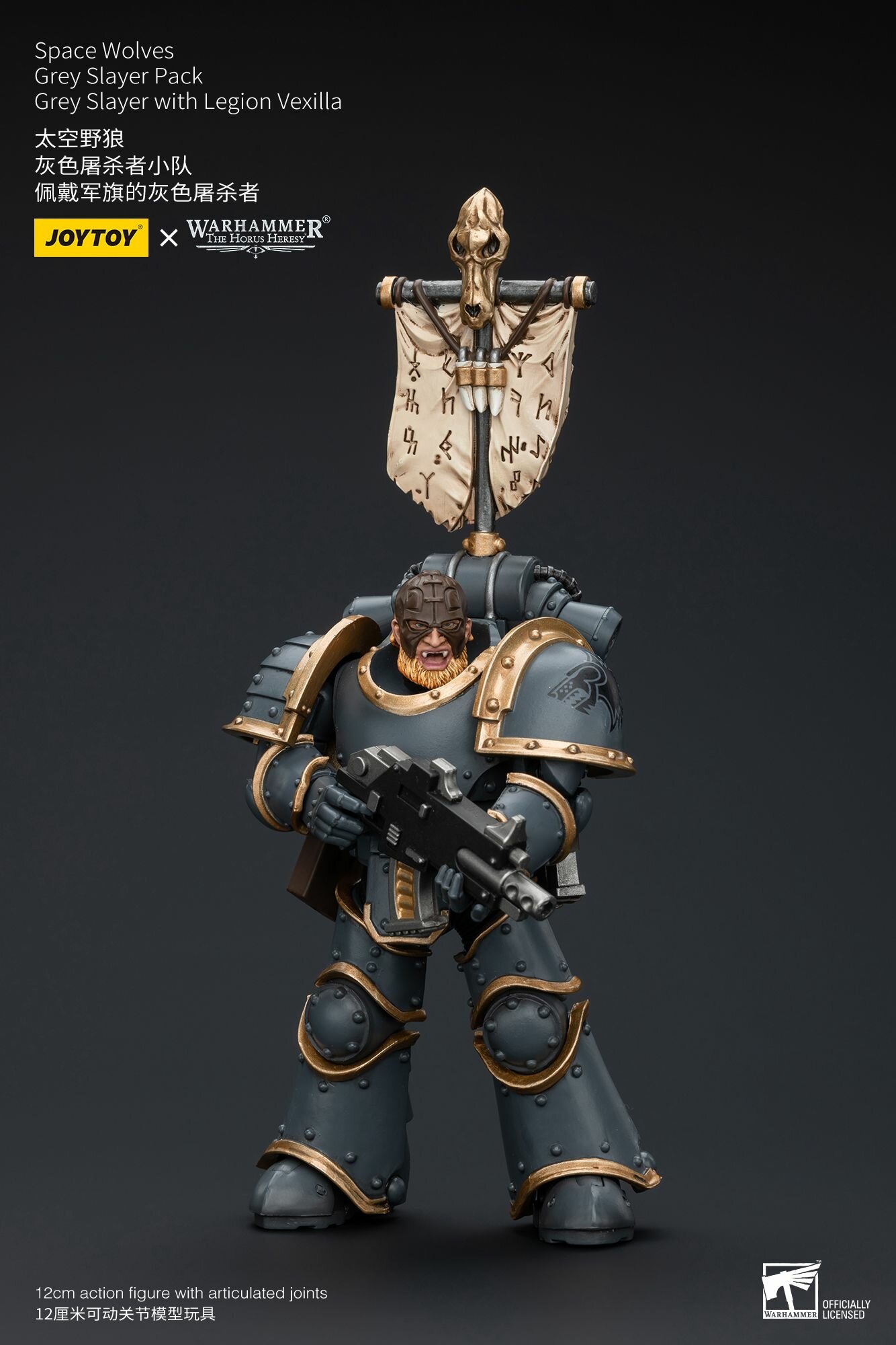 Купить Подвижная фигурка JOYTOY Warhammer 30000 1/18 Space Wolves Grey Slayer Pack Grey Slayer With Legion Vexilla с доставкой по всей России.