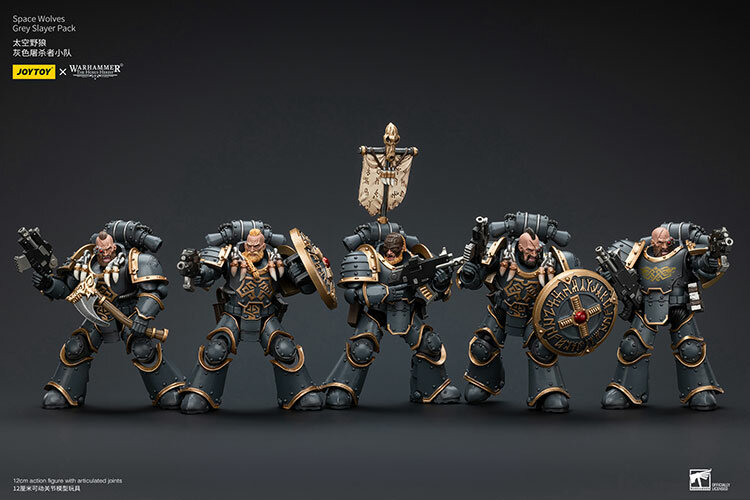 Купить Подвижная фигурка JOYTOY Warhammer 40000 Space Wolves Grey Slayer Pack Grey Slayer With Legion Vexilla JT7509 с доставкой по всей России.