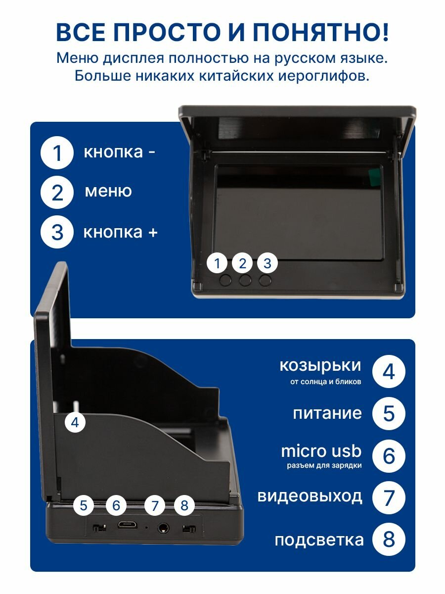 | Конструктивные особенности | для зимней рыбалки, с дисплеем, солнцезащитный козырек |