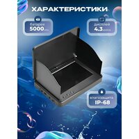 Подводная камера для рыбалки имеет экран 4.3 дюйма и солнцезащитный козырёк для более удобного использования. Передаваемые на экран изображения очень четкие и яркие.