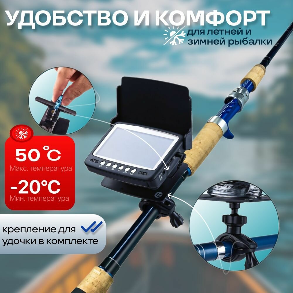 Помимо этого, камера оснащена защитной конструкцией, которая обеспечивает надежную защиту от внешних воздействий и продлевает срок службы устройства. Антибликовый экран гарантирует, что вы сможете четко видеть изображение даже при ярком солнечном свете, что особенно важно во время рыбалки на открытой воде.