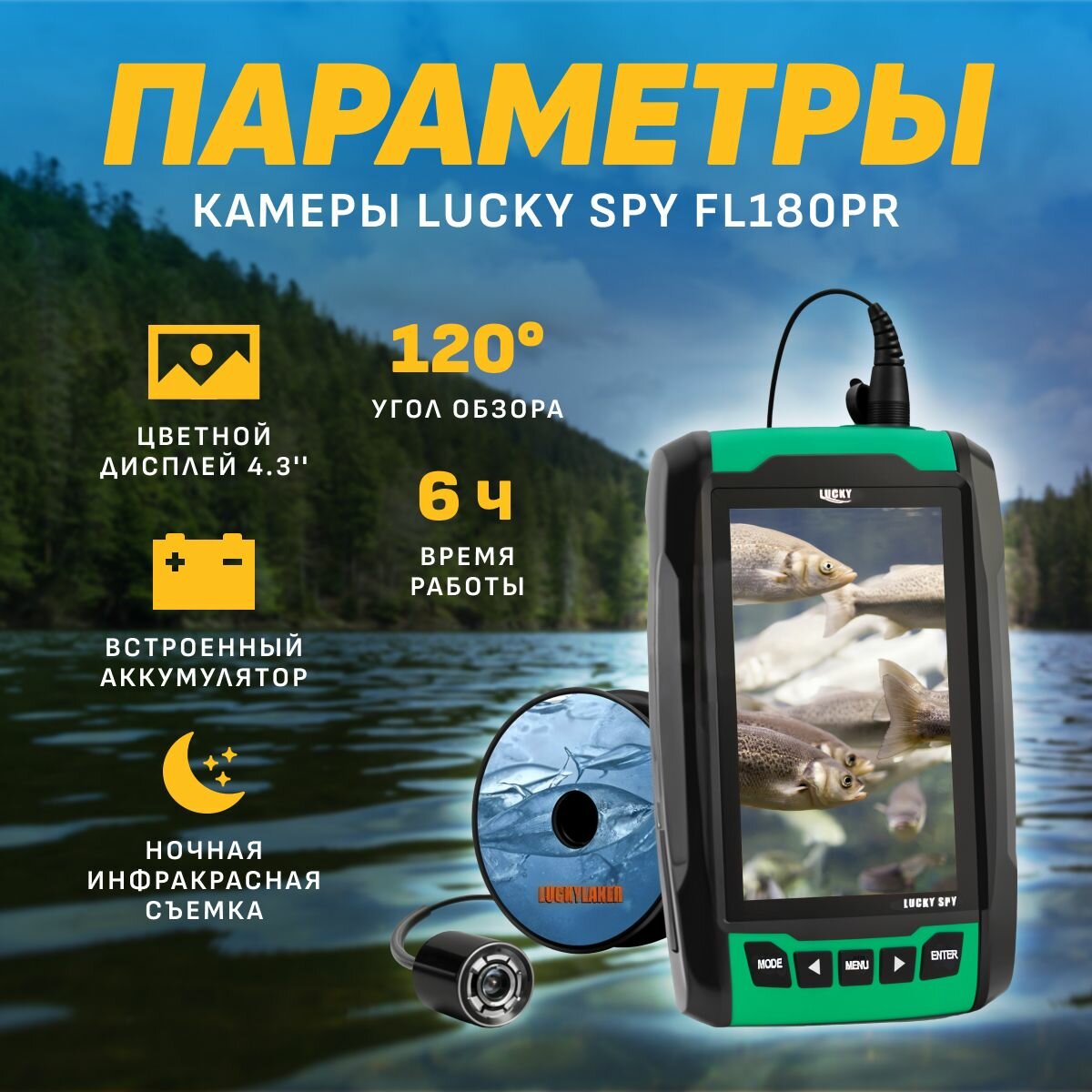 Купить Подводная камера для рыбалки Lucky SPY FL180PR с возможностью записи с доставкой по всей России.